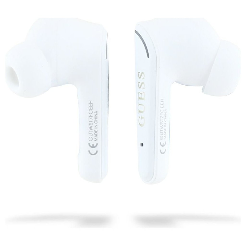 Bezdrôtové slúchadlá TWS Guess Flat Classic Logo Electroplated biele