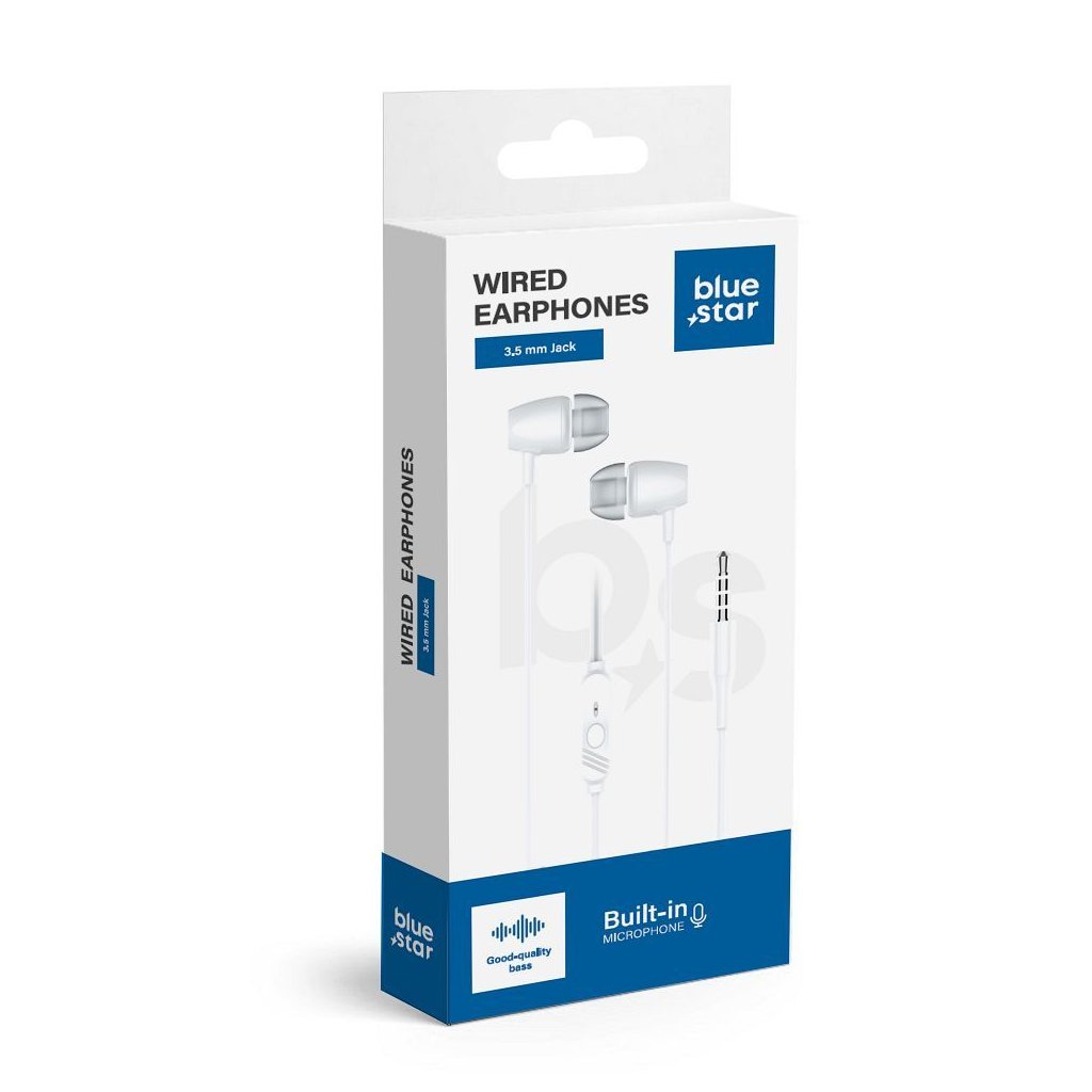 Káblové slúchadlá Blue Star PA-E67, Jack 3,5 mm, 1,2 m, biele