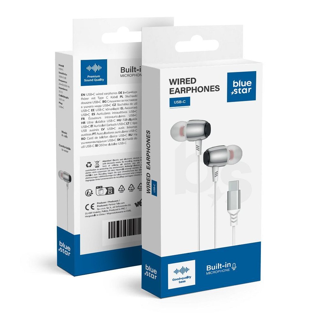 Káblové slúchadlá Blue Star M09C, USB-C (DAC), 1,2 m, biele