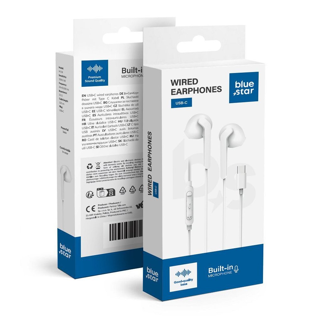 Káblové slúchadlá Blue Star PA-M15C-R, USB-C (DAC), 1,2 m, biele
