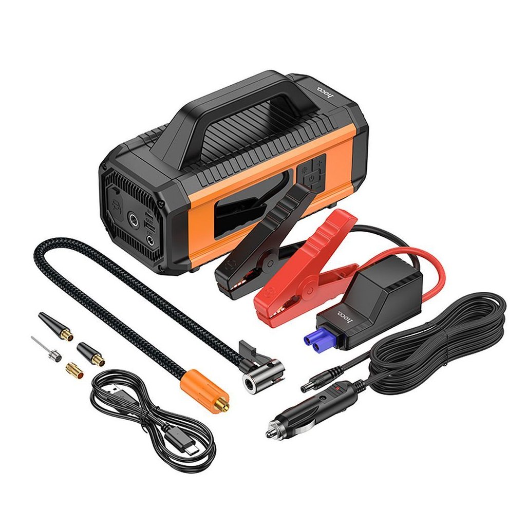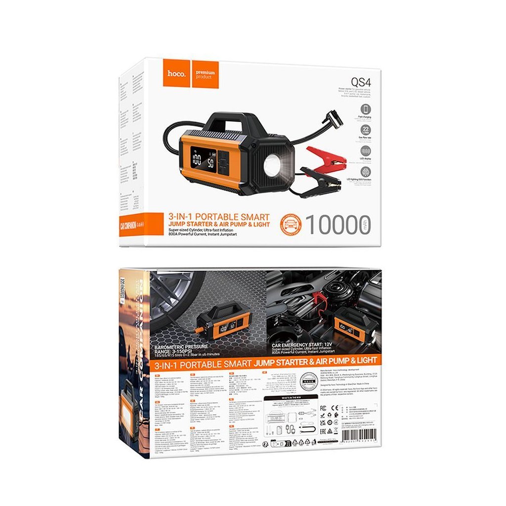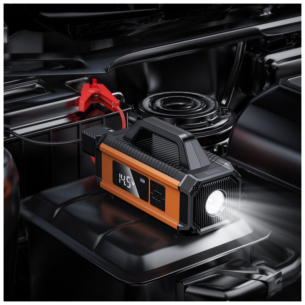 HOCO powerbanka 10000 mAh s núdzovým štartovaním do auta s kompresorom a LED svetlom 18W QS4 oranžovo-čierna