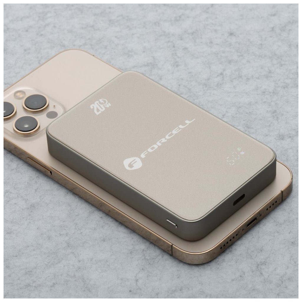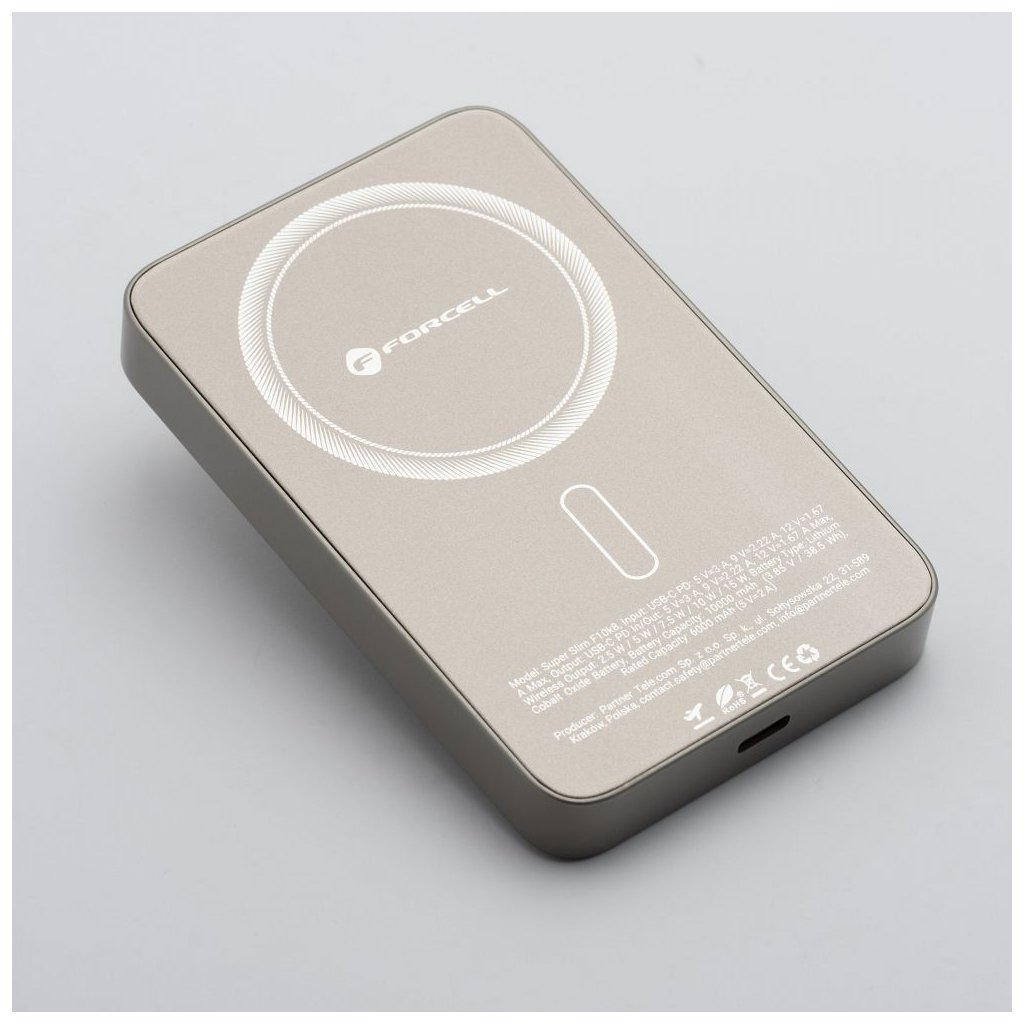 Powerbanka kompatibilná s MagSafe Forcell F-Energy SuperSlim F10K8 QC4.0 PD3.0 15W 10000 mAh titánová púšť