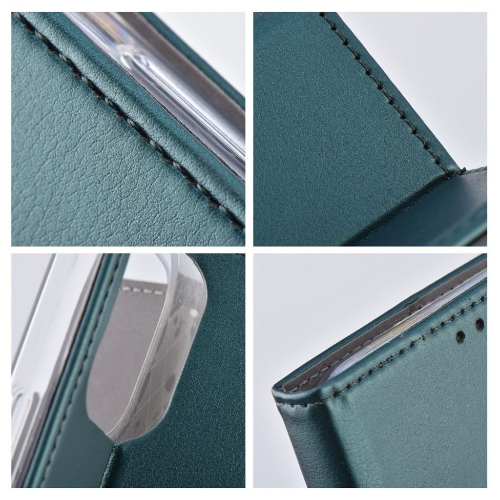 Peňaženkový obal SMART MAGNETO Book pre XIAOMI Redmi Note 15 5G tmavo zelený s magnetickým zapínaním je klasické puzdro na telefón s funkciou peňaženky a stojana na TV. Je vyrobené z metalizovaného materiálu, podšité mäkkou tkaninou, ktorá chráni obrazovku pred poškriabaním.