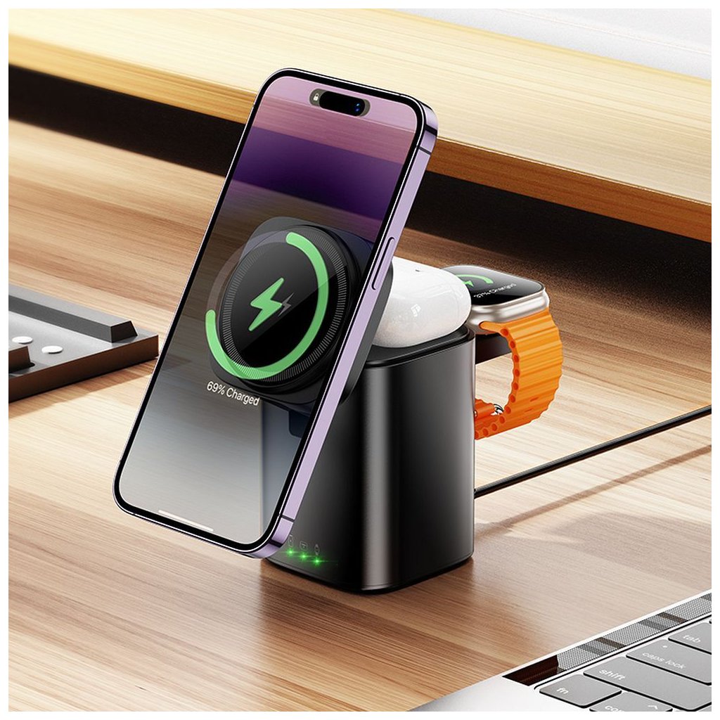 Nabíjajte tri zariadenia naraz – ideálne pre smartfón, Apple Watch a bezdrôtové slúchadlá.