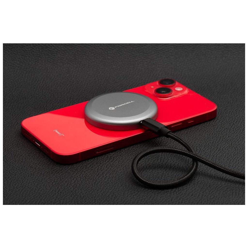 MagSafe nabíjačka FORCELL F-ENERGY Smart Charge Qi2 15 W so 150 cm odpojiteľným káblom strieborná