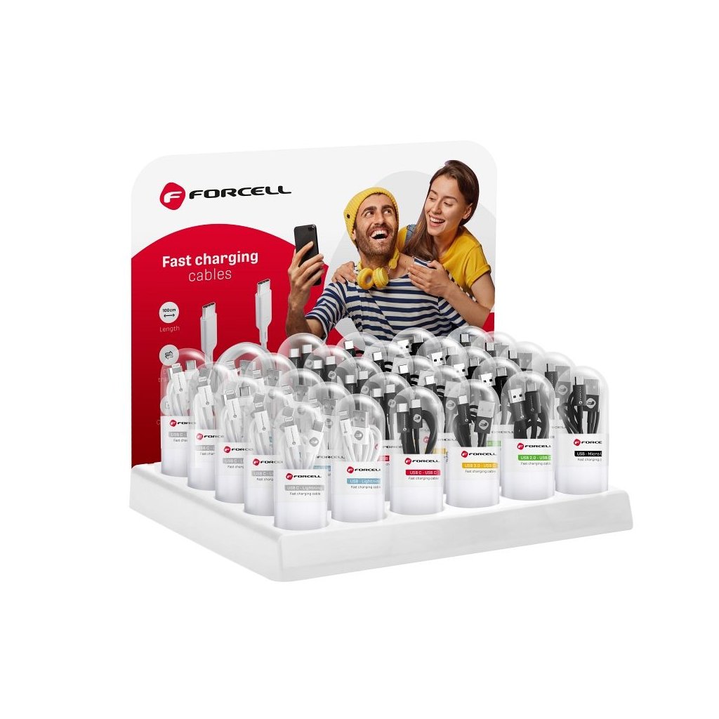 Nabíjací USB kábel Forcell s micro USB konektorom vám umožní nabíjať vaše zariadenia a prenášať dáta. Tento spoľahlivý kábel je zárukou bezpečného pripojenia. Umožňuje vám rýchlo nabíjať vaše zariadenia prúdom 2,4A.