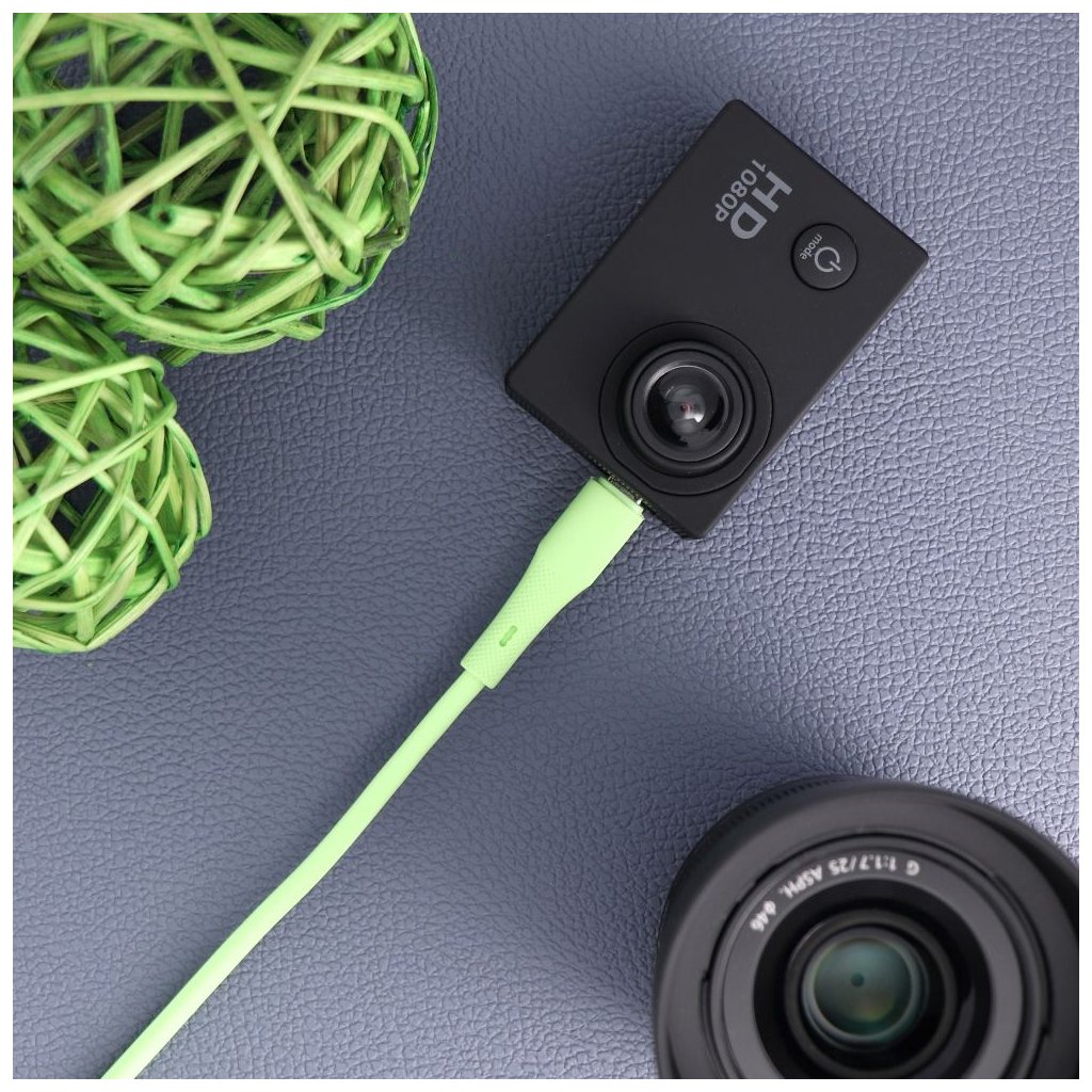 Kábel je vyrobený z odolného silikónového opletenia, ktoré ponúka vysokú flexibilitu a odolnosť voči mechanickému poškodeniu. Mäkký silikónový materiál zaisťuje, že sa kábel nezamotá, a poskytuje dlhotrvajúci výkon aj pri každodennom používaní.
