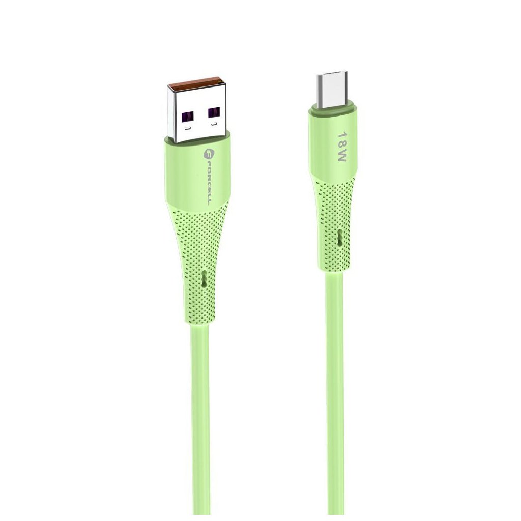 Prepojovací kábel FORCELL F-ENERGY C341 USB A na Micro USB QC3.0 2,4A 18W silikónový 1 m zelený