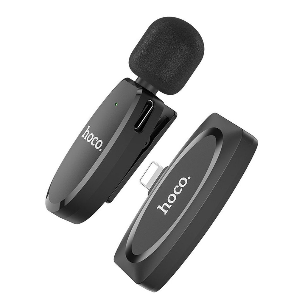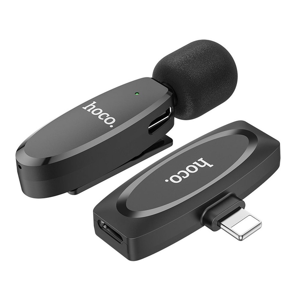 Bezdrôtový lavalier mikrofón HOCO pre iPhone Lightning 8-pin L15 čierny