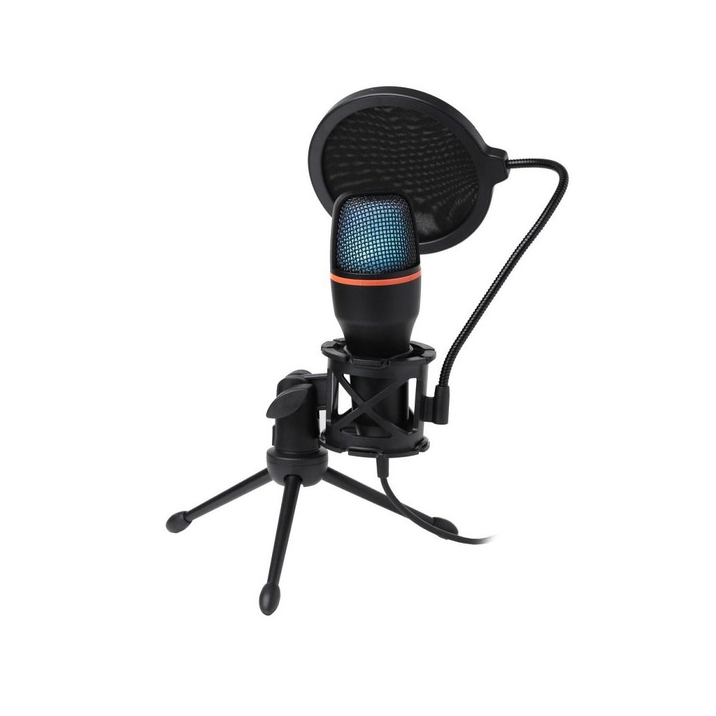 Kondenzátorový stojanový mikrofón s mechanickým filtrom a membránou. Navrhnuté pre streamovanie, hranie hier, dabing, online chatovanie atď.