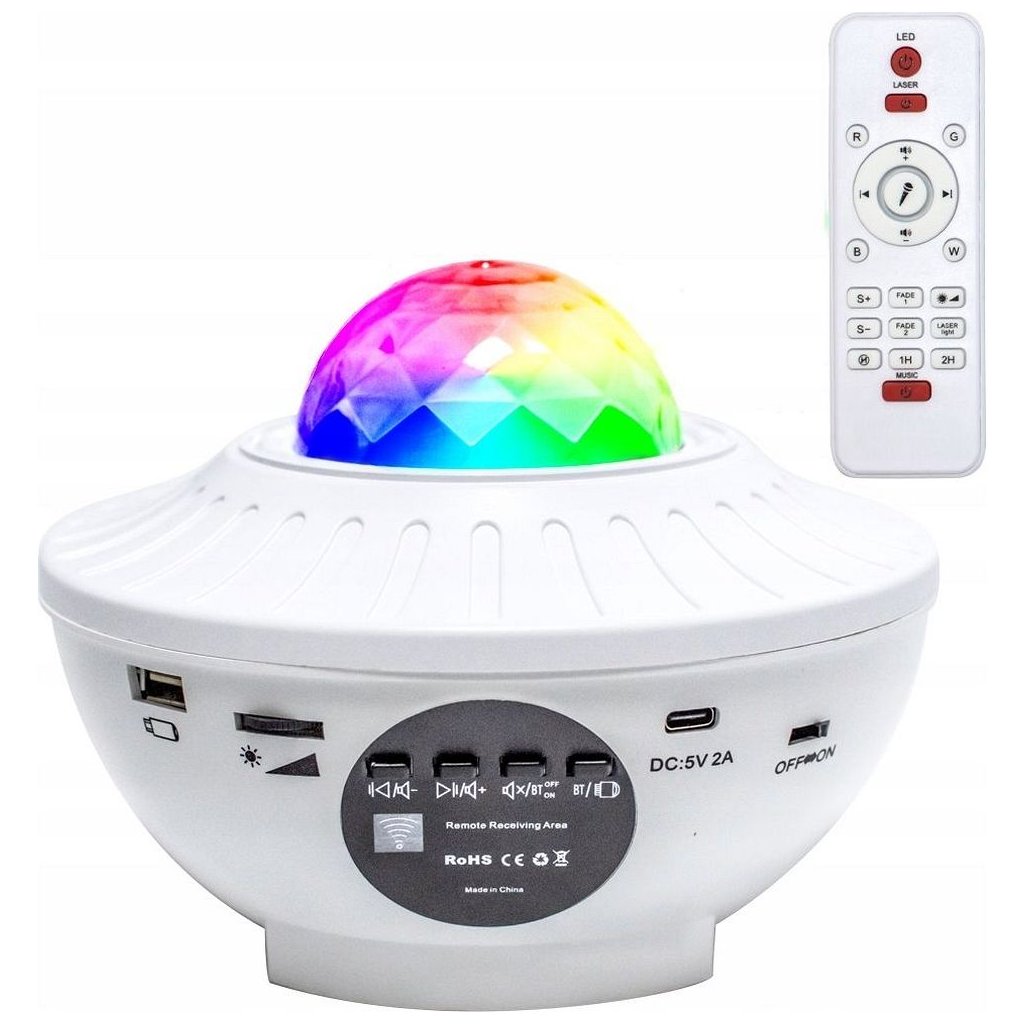 Hviezdny projektor STARS LED / Disco s reproduktorom bluetooth + diaľkové ovládanie + USB BTM0504-B / HD-SPL biely