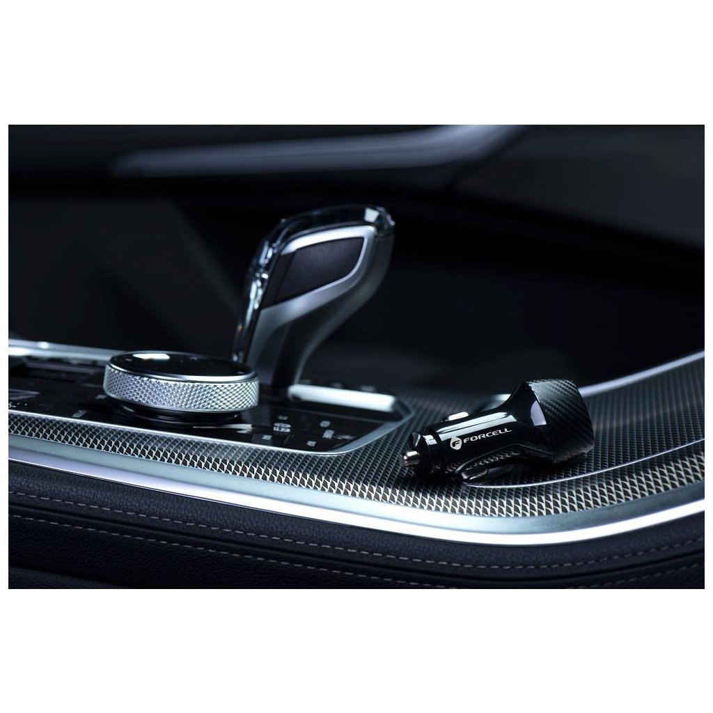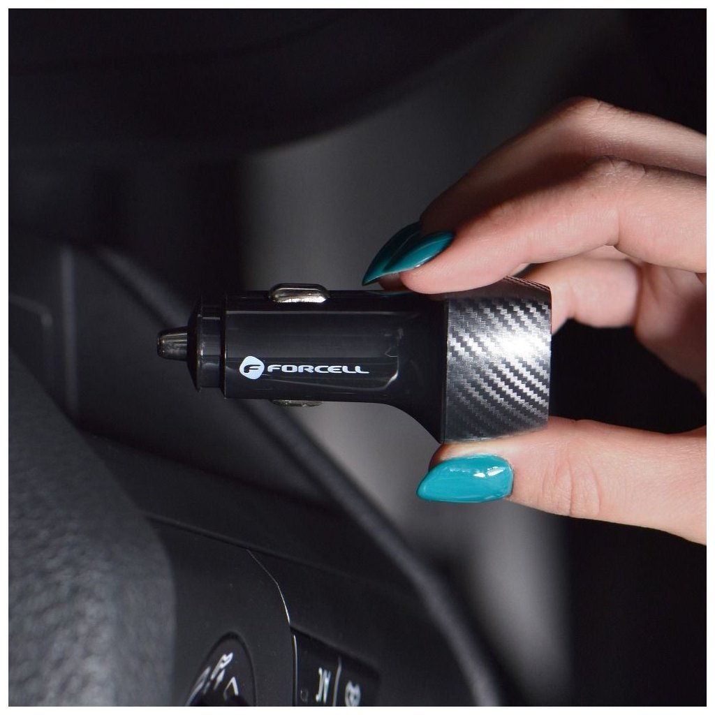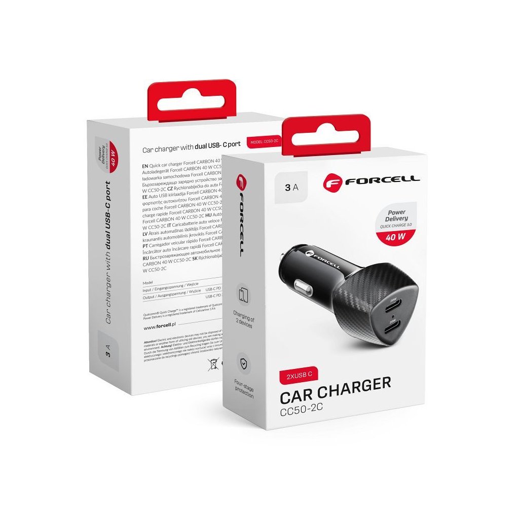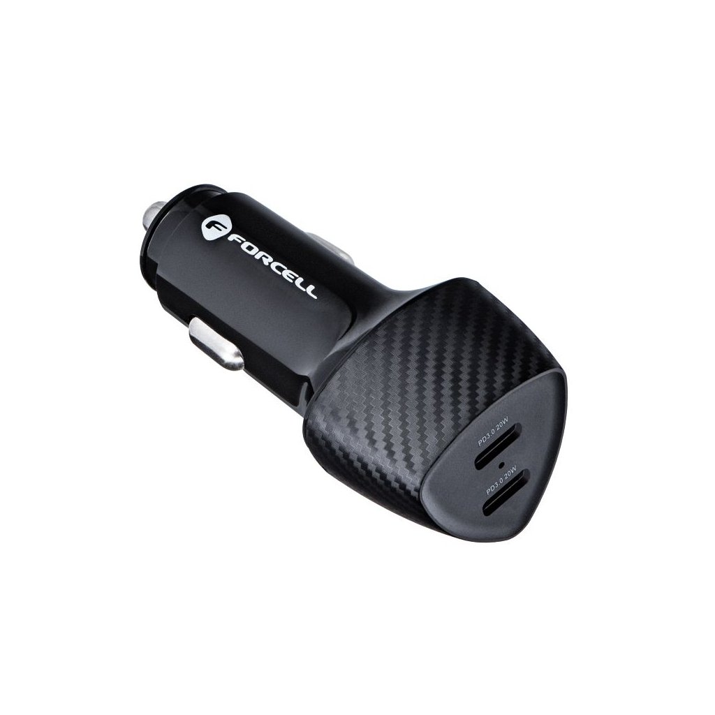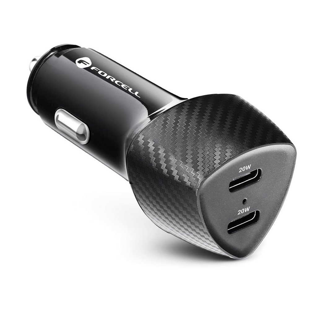 Nabíjačka do auta FORCELL CARBON typ C 3.0 PD20W + typ C 3.0 PD20W CC50-2C čierna (spolu 40W)