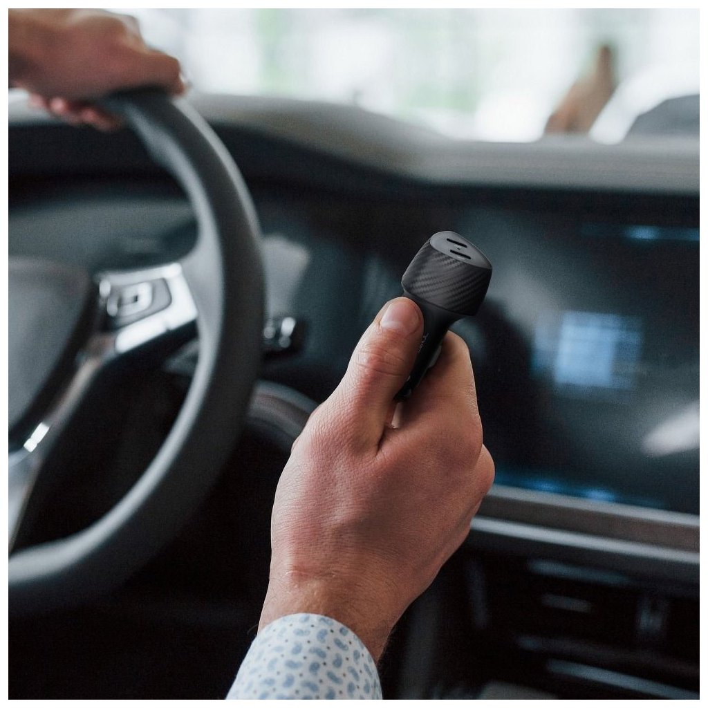 Nabíjačka do auta FORCELL CARBON CC50-2C je vybavená dvoma výstupmi USB-C, takže môže nabíjať dve zariadenia súčasne. Každý port podporuje rýchle nabíjanie. S ktorýmkoľvek vstupom typu C môžete nabíjať 20 W pomocou technológie Power Delivery 3.0. Vďaka tomu môžete na cestách výrazne skrátiť čas nabíjania zariadenia na minimum.