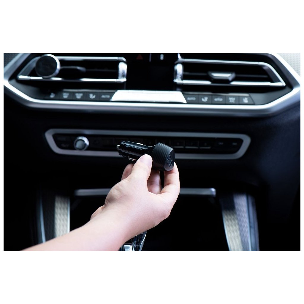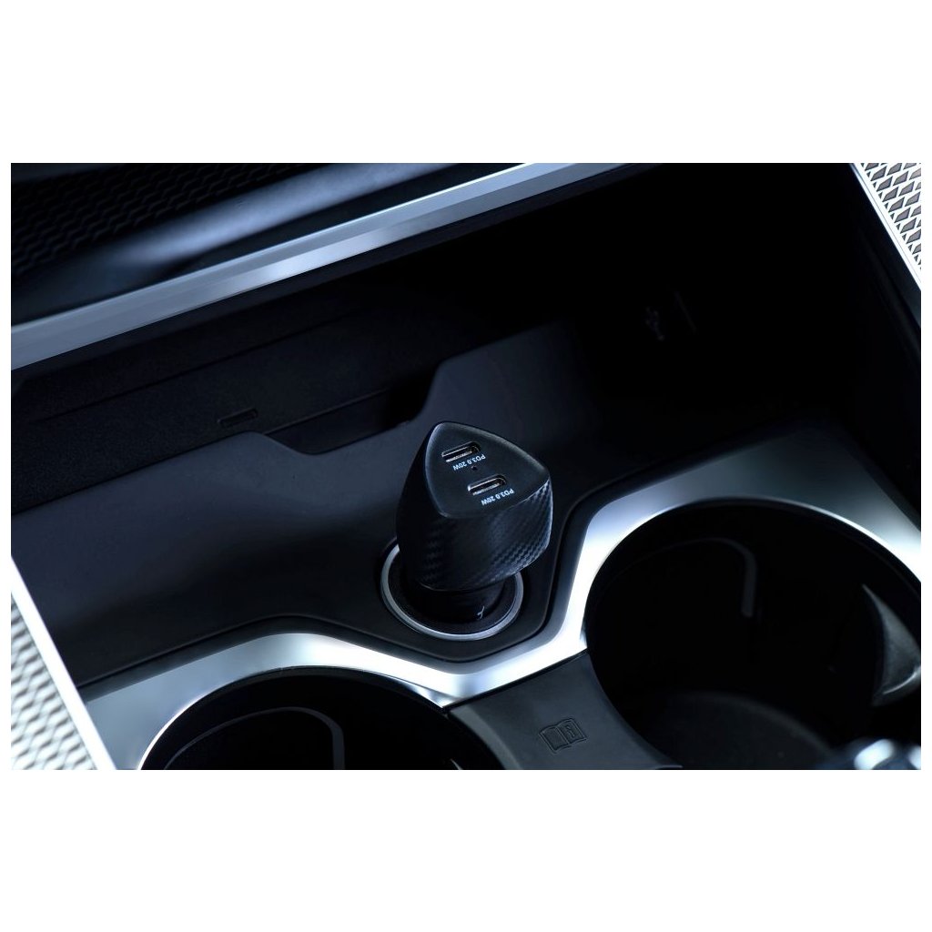 Nabíjačka do cigaretového zapaľovača FORCELL CARBON CC50-2C s dvoma výstupmi USB-C s podporou rýchleho nabíjania a celkovým výkonom 40 W vám umožní pohodlne nabíjať dve zariadenia súčasne. Certifikovanú nabíjačku do auta v krásnom karbónovom dizajne si jednoducho nemôžete nechať ujsť!