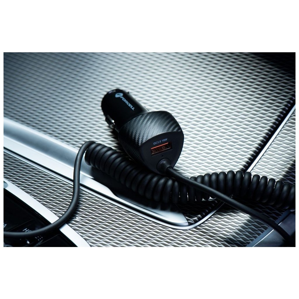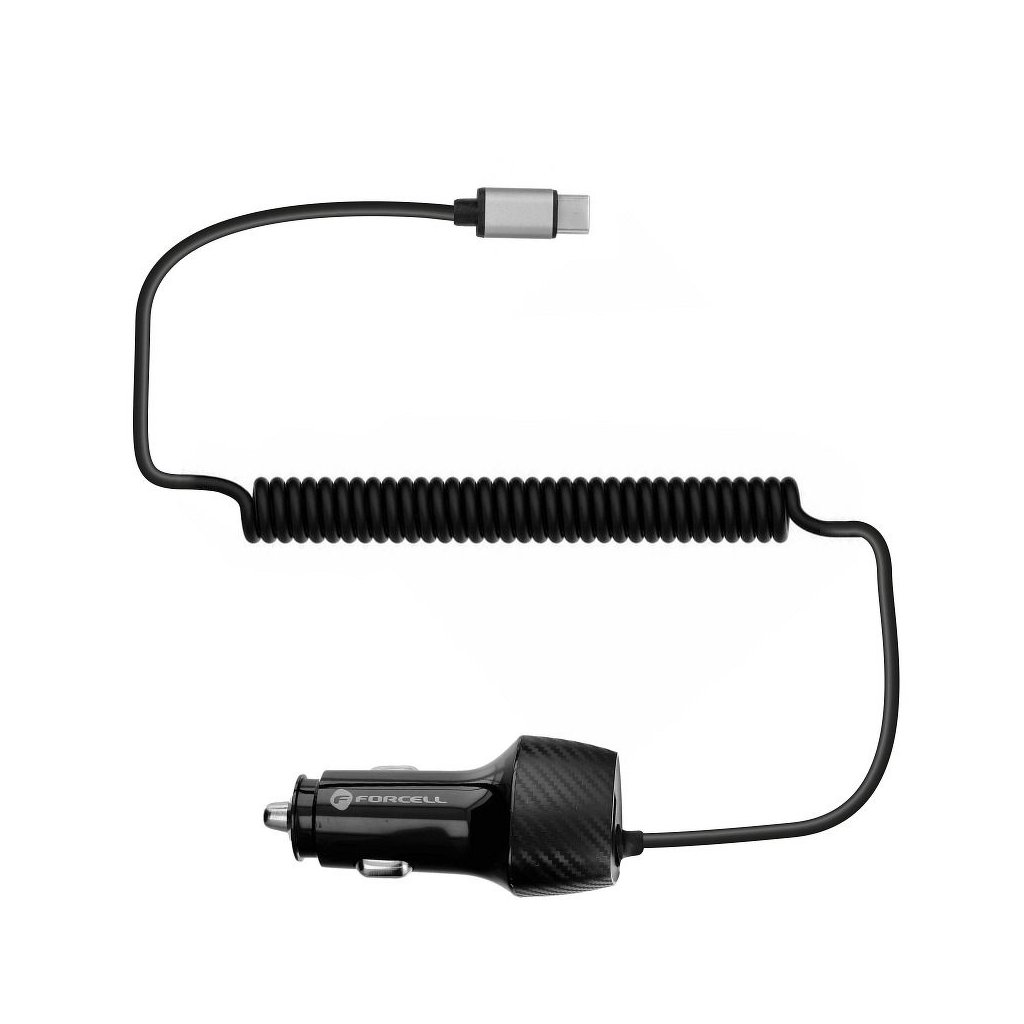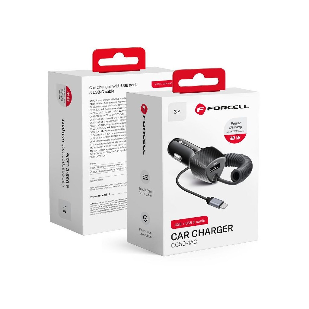 Nabíjačka do auta FORCELL CARBON USB QC 3.0 18W + kábel na typ C 3.0 PD20W CC50-1AC čierna (Spolu 38W)