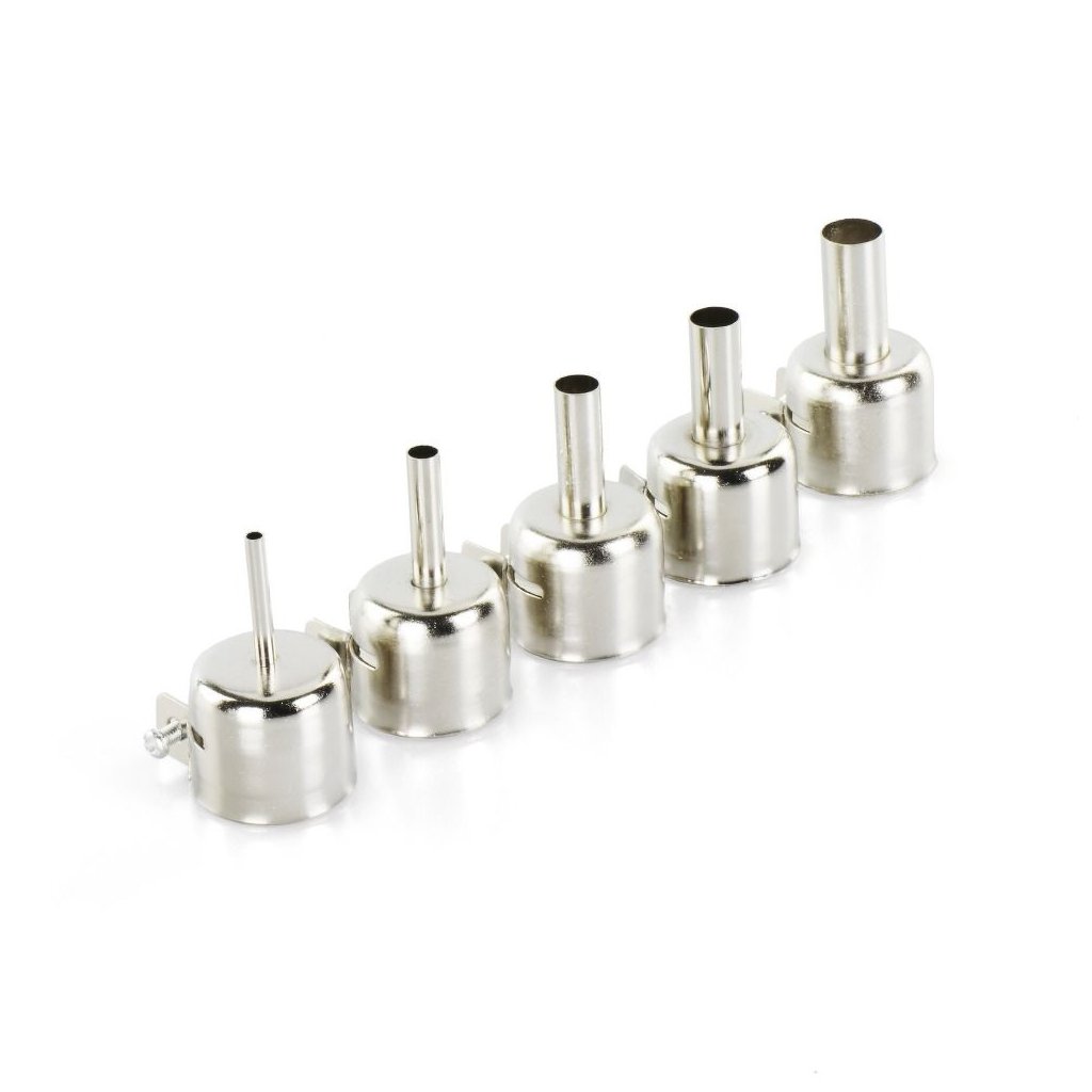 Sada obsahuje pět vyměnitelných trysek (trysek) různých průměrů určených pro pájecí stanice s horkým vzduchem.