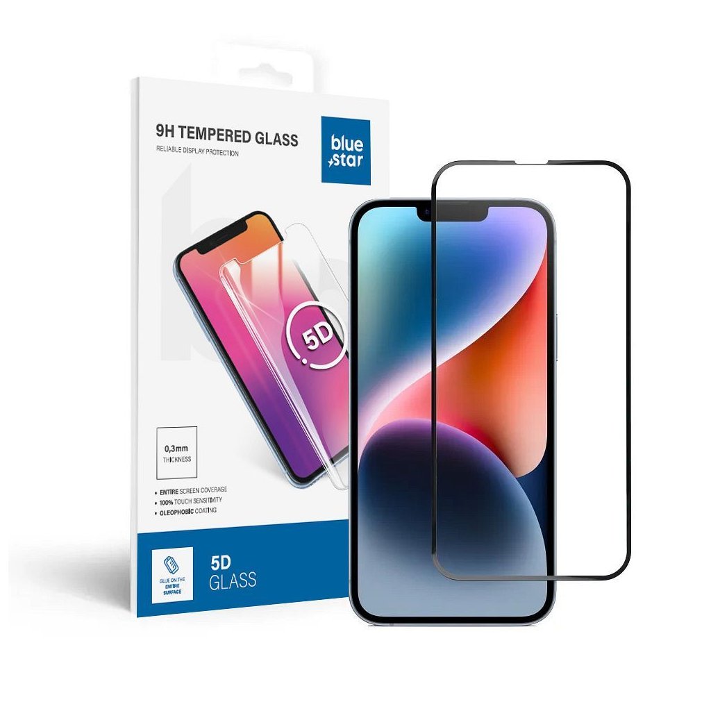 Tvrdené sklo 5D to iPhone 13 PRO MAX /14 PLUS (full glue) Blue Star 5D - okraj čierny zaistí Vášmu smartfónu efektívnu ochranu, vynikajúcu čistotu obrazu a zamaskuje škrabance na displeji. Ochranné tvrdené sklo Bluestar 5D poskytuje ochranu celému displeju telefónu vrátane jeho bokov. Vďaka oleofóbnemu poťahu sa nemusíte báť odtlačkov prstov a zachytávania mastnôt.
