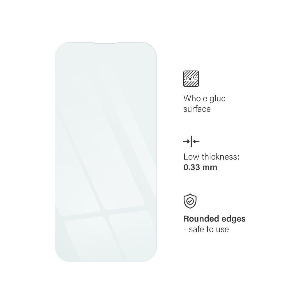 Niektoré modely telefónov majú zaoblené hrany, takže sklo nie je úplne po okraj. Na každej strane môže zostať cca 2-3 mm medzera.