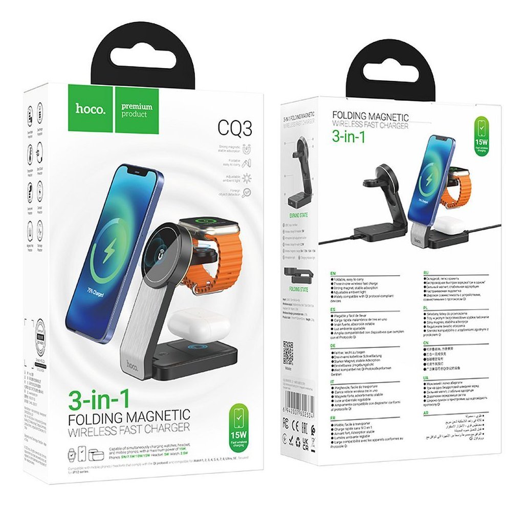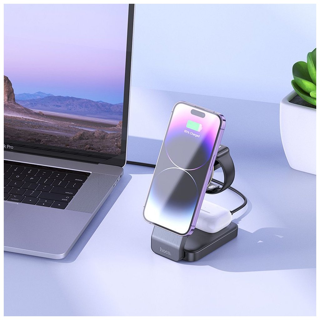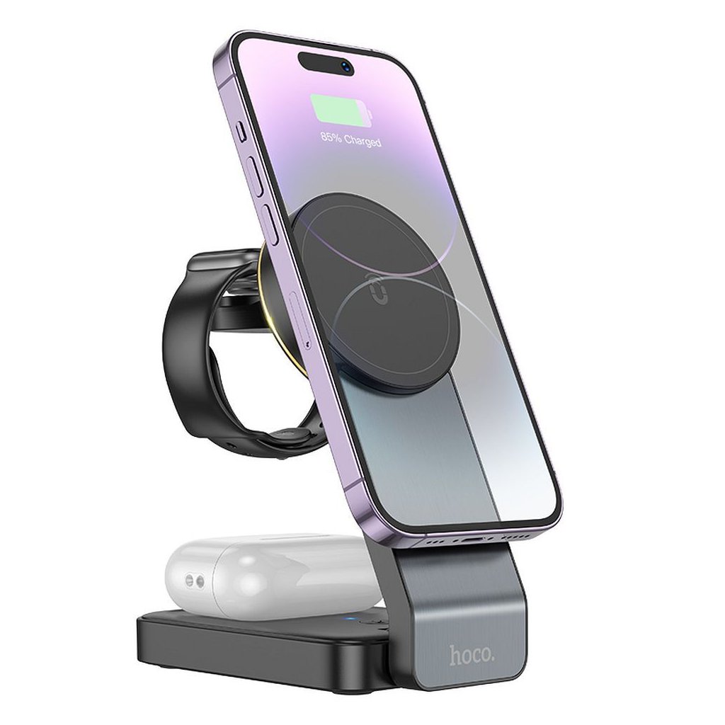 Bezdrôtová nabíjačka HOCO 3v1 kompatibilná s MagSafe 15W CQ3 čierna