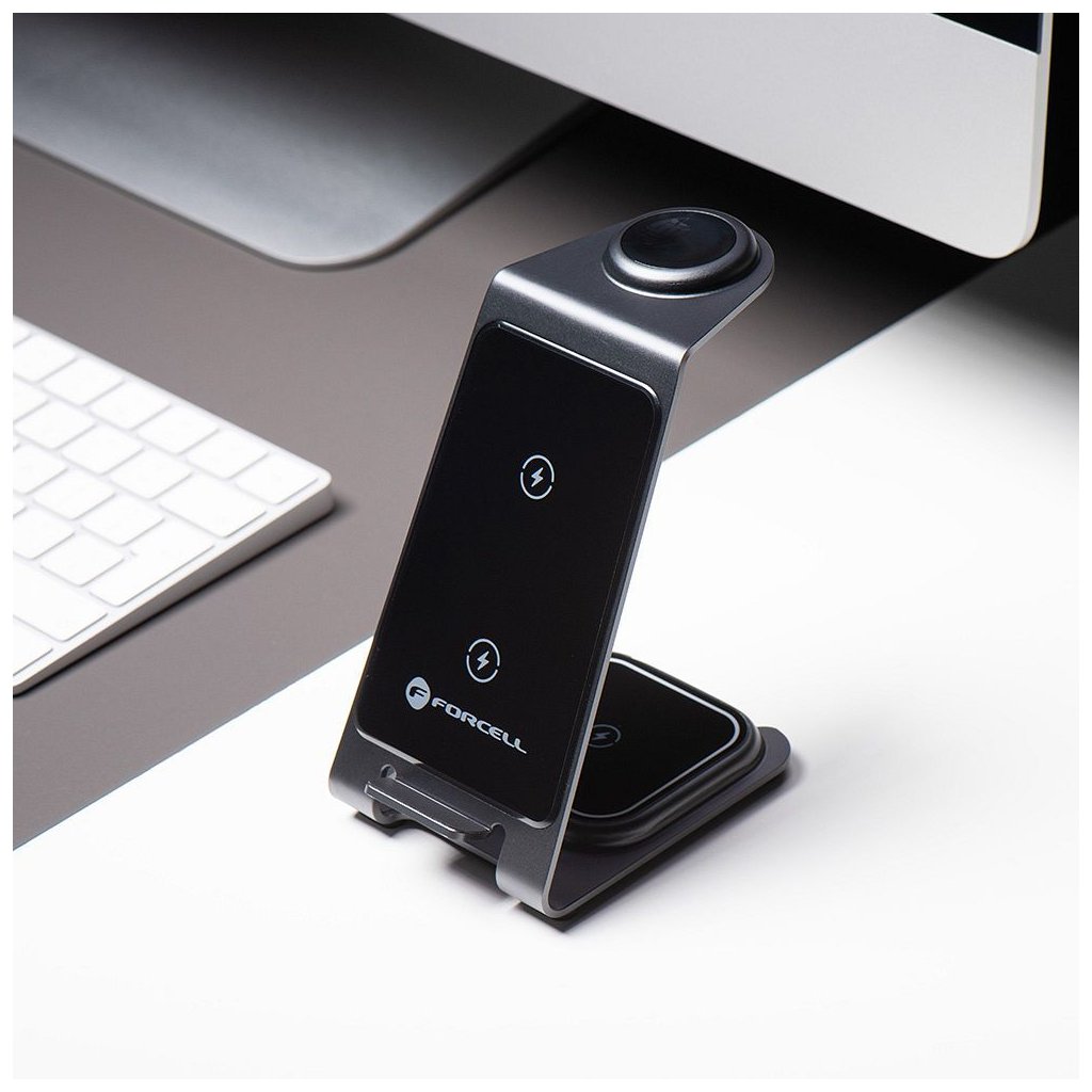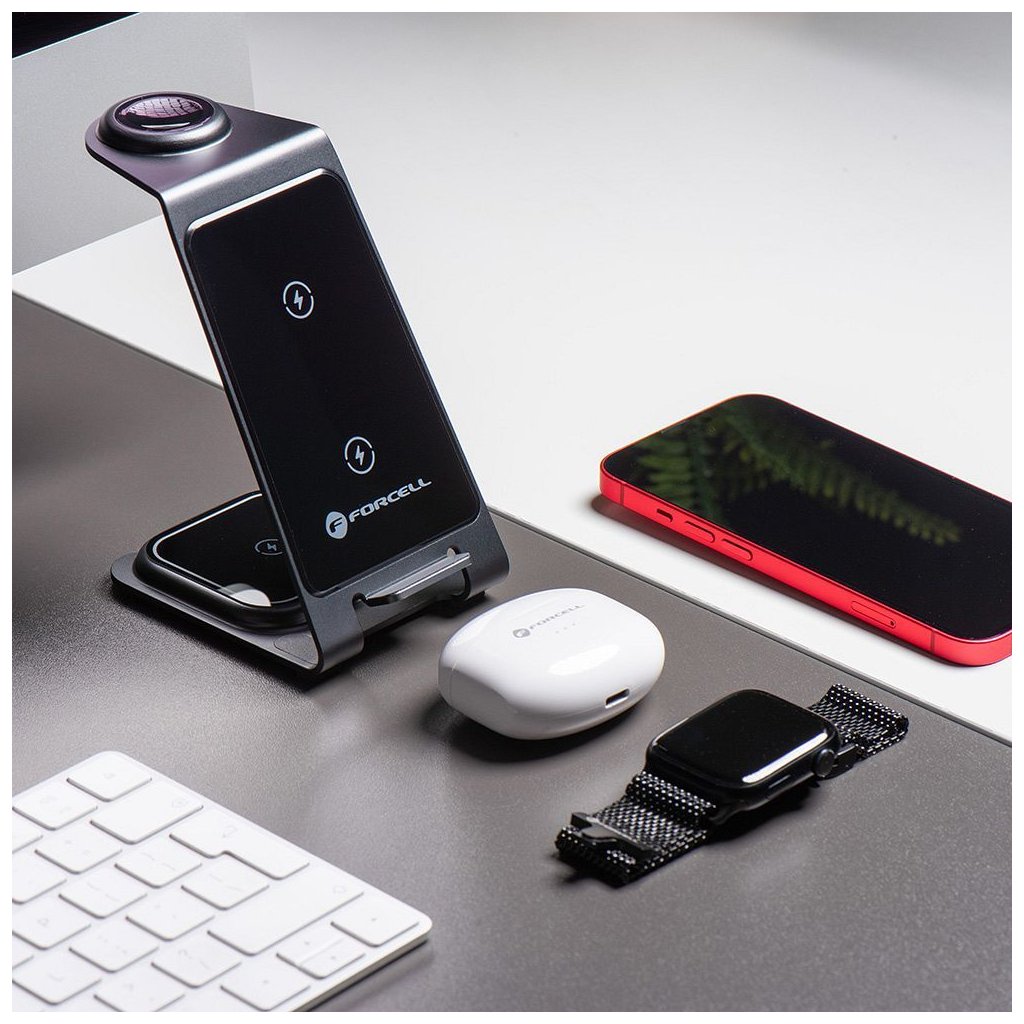 Nabíjačka Forcell F-ENERGY Simply Charge 3v1 kompatibilná s Apple Watch a Samsung Watch, sivá