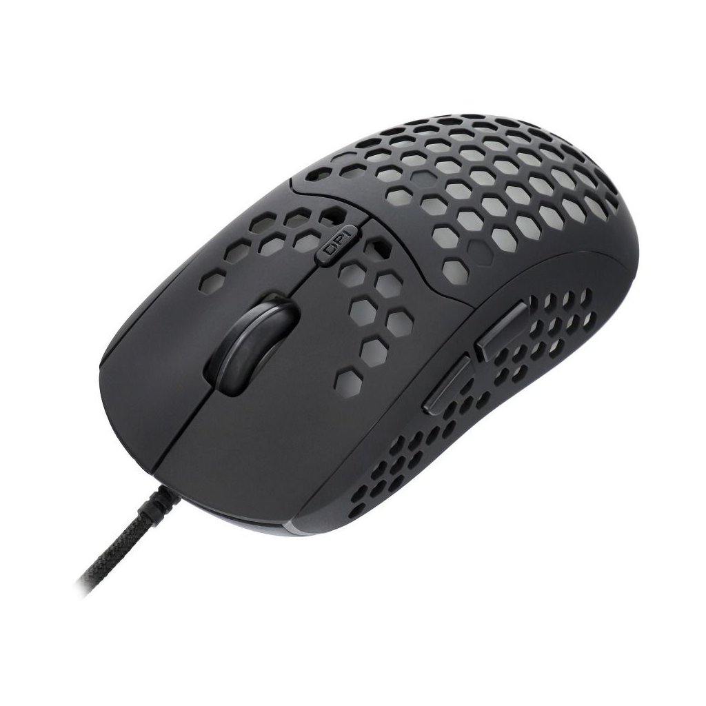 Myš perfektne padne do ruky a nešmýka sa po povrchu. Má podsvietený roller, šesť tlačidiel vr. pre zmenu rozlíšenia a WWW navigácie a USB port.