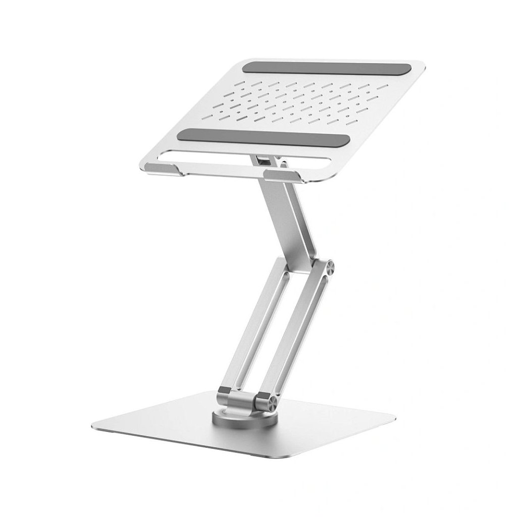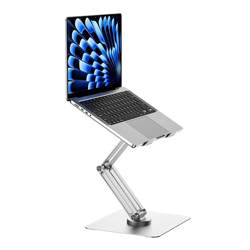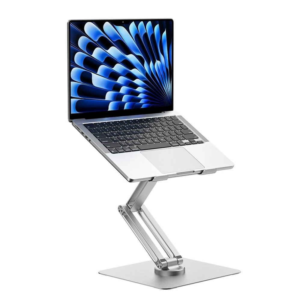 Toto zvýšenie pohodlia pri používaní umožňuje využiť dostupnú infraštruktúru pracovného priestoru. Stojan je tiež skladací, čo uľahčuje jeho skladovanie a prepravu, a to aj napriek tomu, že konštrukčné riešenie poskytuje ľahkosť a efektívne riešenia. Pevná základňa a premyslené rozloženie síl zaručujú bezpečnosť notebooku umiestneného na ňom, a to aj pri použití funkcie otáčania.