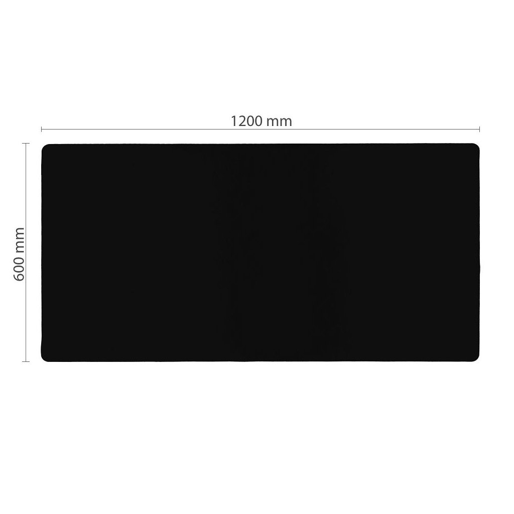 Priestranná podložka s rozmermi 1200 × 600 × 2 mm, na ktorú sa zmestí myš a klávesnica. Univerzálna, čierna farba podložky sa dokonale hodí do každého interiéru, ladí s kanceláriami aj hernými setmi.