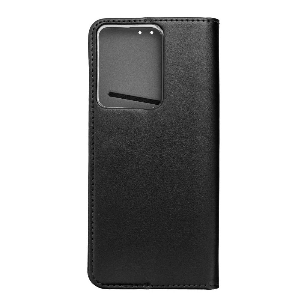 Peňaženkový obal SMART MAGNETO Book pre REALME 14T 5G čierny s magnetickým zapínaním je klasické puzdro na telefón s funkciou peňaženky a stojana na TV. Je vyrobené z metalizovaného materiálu, podšité mäkkou tkaninou, ktorá chráni obrazovku pred poškriabaním.