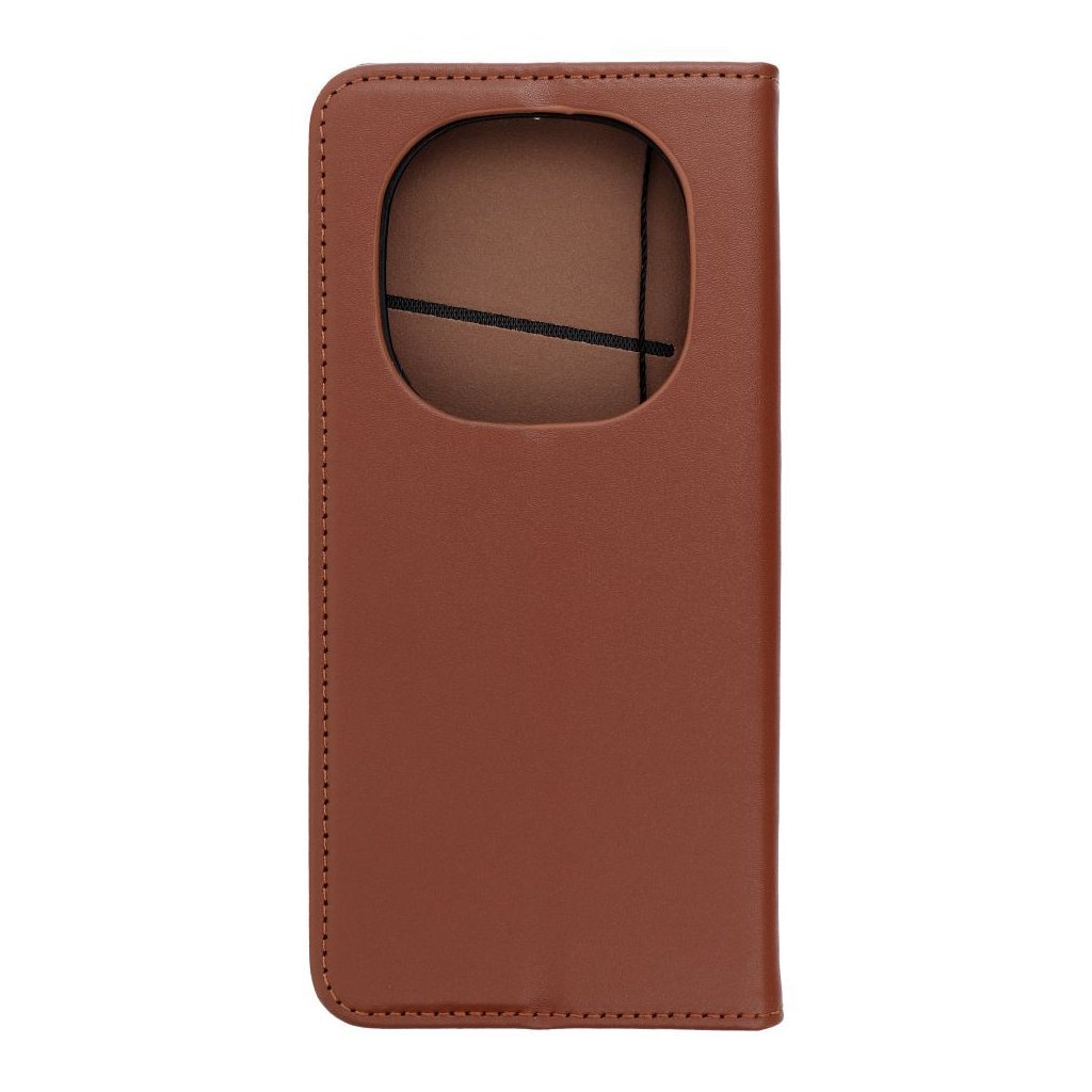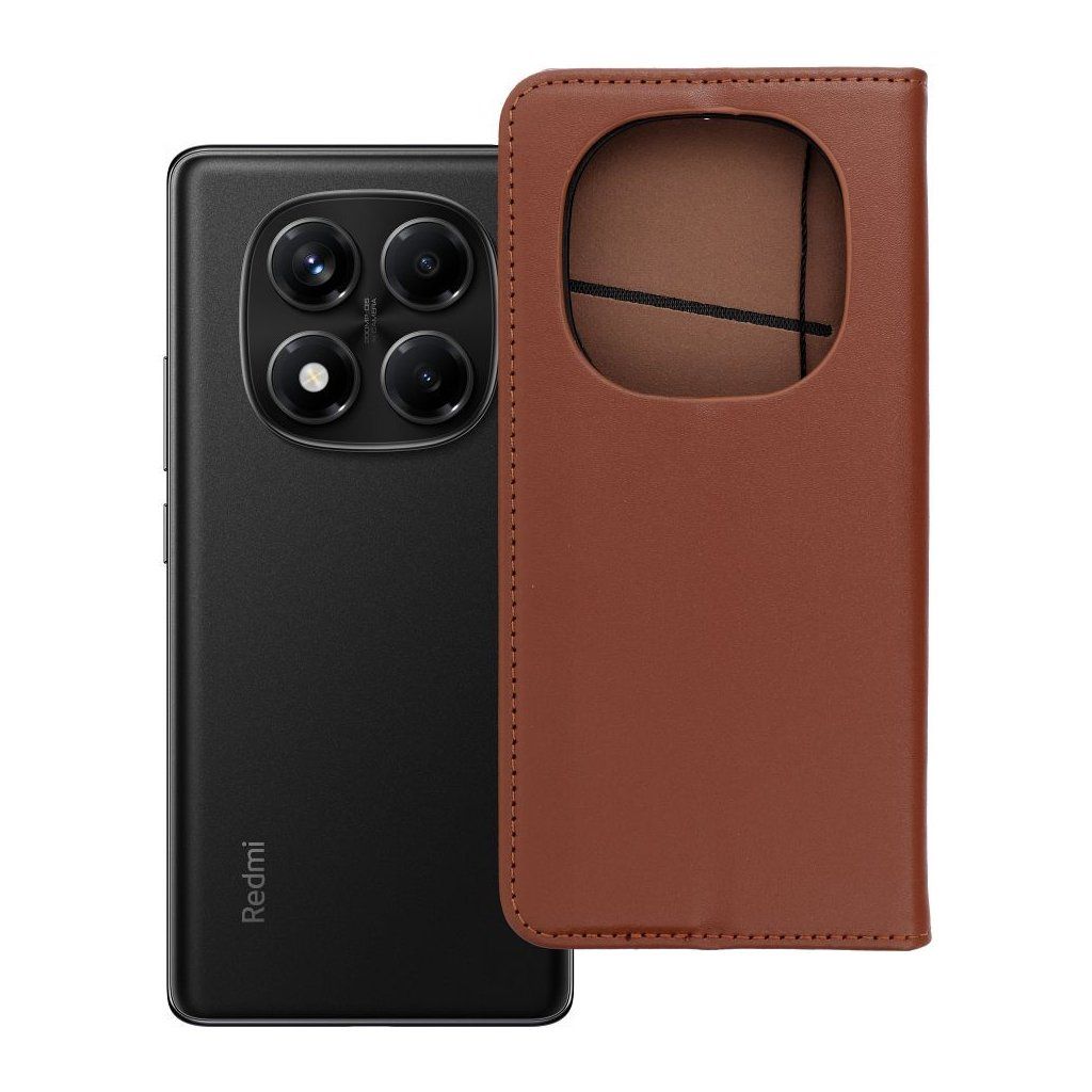 Elegantné kožené puzdro SMART PRO Book pre XIAOMI Redmi Note 14 PRO 4G hnedé z vysoko kvalitných materiálov (prírodnej kože a TPU) a veľmi starostlivým spracovaním je určené pre náročných užívateľov, ktorí majú radi svoj štýl. Konštrukcia je vystužená, ale k dodatočnej ochrane i estetickej funkcii prispievajú aj švy po okrajoch, vyvedené vo farbe vnútornej časti puzdra.