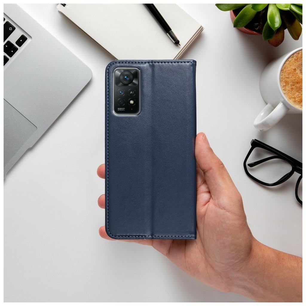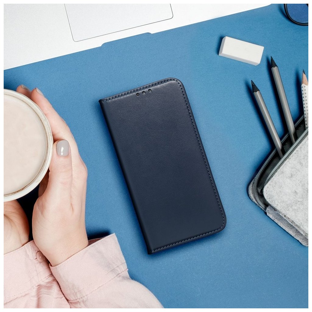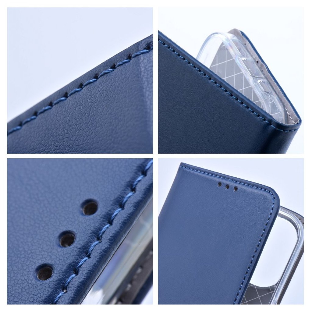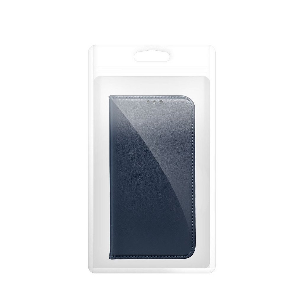 Peňaženkový obal SMART MAGNETO Book pre HONOR 400 tmavo modrý s magnetickým zapínaním je klasické puzdro na telefón s funkciou peňaženky a stojana na TV. Je vyrobené z metalizovaného materiálu, podšité mäkkou tkaninou, ktorá chráni obrazovku pred poškriabaním.
