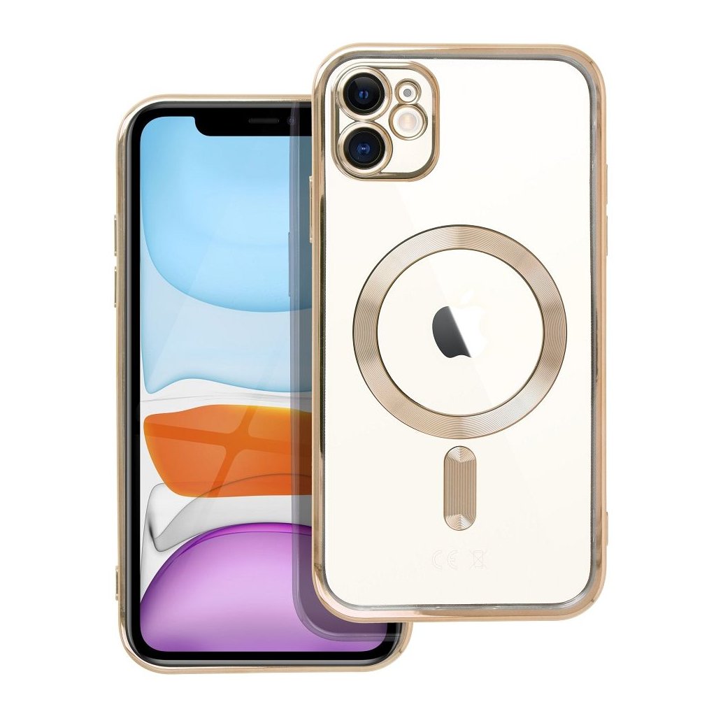 MagSafe priehľadné puzdro ELECTRO MAG COVER pre IPHONE 11 zlaté je vhodné pre pužitie s rôznym príslušenstvom podporujúce magnetické uchytenie MagSafe®. Kvalitný kryt ochráni váš telefón pred poškodením a vďaka prekrytiu ostrovčeka fotoaparátu bude vaša optika v bezpečí.