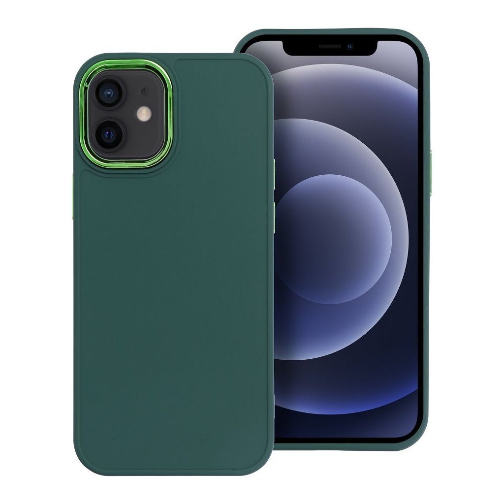 Tento štýlový kryt FRAME Case pre IPHONE 12 Mini zelený bude váš elegantný a praktický doplnok pre váš outfit. Má zosilnené okraje, mäkký materiál TPU a vyvýšený rám okolo ostrovčeka fotoaparátu. Je vyrobený z PC a potiahnutý pozinkovanou lesklou vrstvou v odtieni, ktorý dokonale dopĺňa farbu celého puzdra. Rovnaký farebný povrch je použitý aj na bočných tlačidlách.