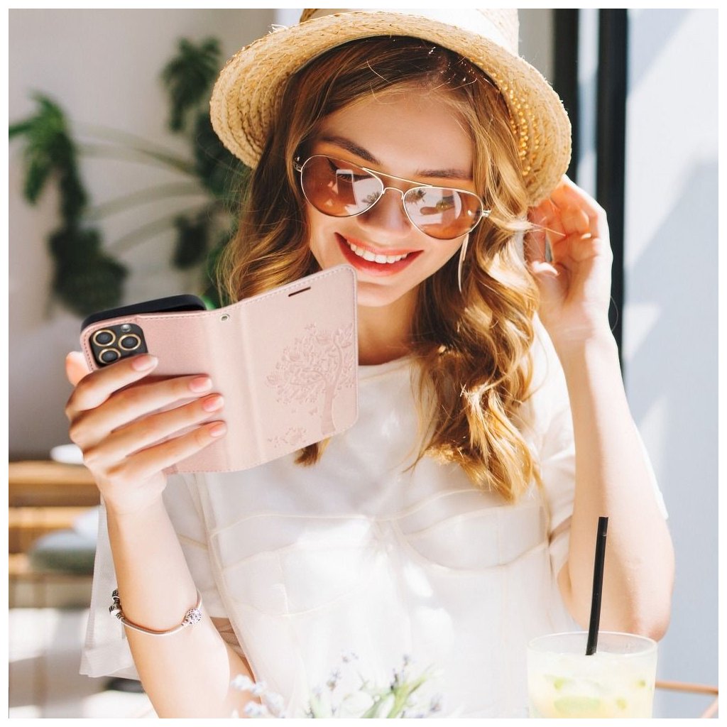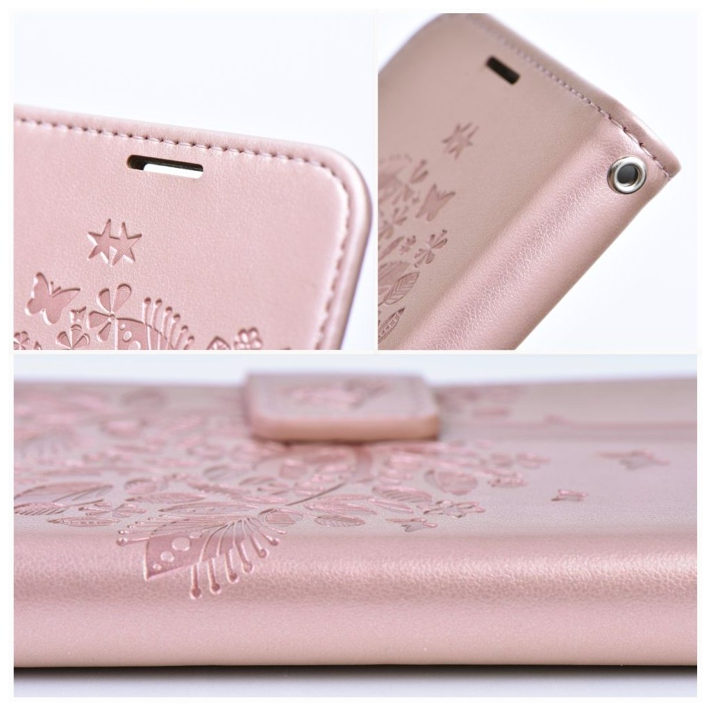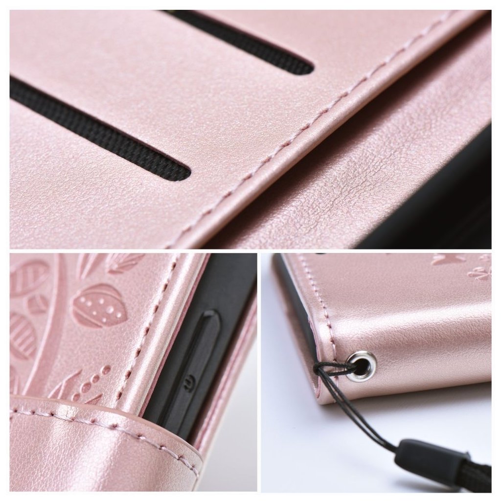 Peňaženkové / zatváracie Puzdro MEZZO Book pre IPHONE 12 / 12 PRO strom - ružovo zlaté zaujme predovšetkým spracovaním vzoru mandaly, stromu, prípadne lapača snov. Oproti iným puzdrom podobného typu nie sú totiž vzory u puzdier Forcell Mezzo Book natlačené, ale vtlačené priamo do materiálu (ekologická koža). Vďaka tomu sa vzor jednak nezotrie, ale môžete ho naozaj na dotyk cítiť.