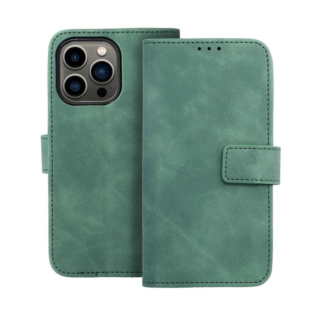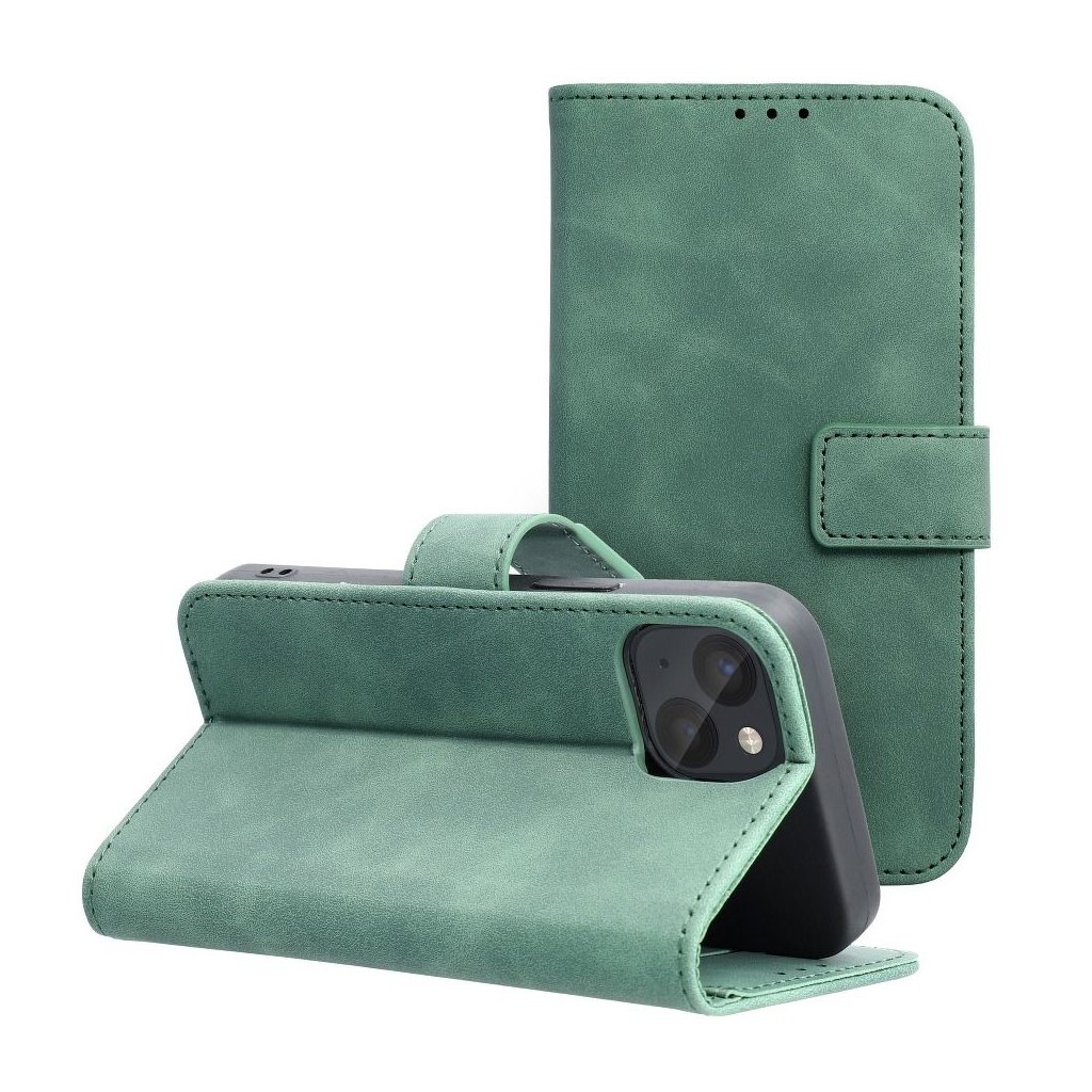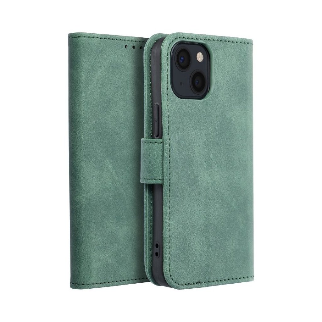 Zatvárací peňaženkový obal TENDER Book pre IPHONE 13 MINI zelený v príjemnej imitácii kože v decentných farbách je ako stvorené pre každého, kto má skutočne štýl. Materiál je na dotyk veľmi príjemný a mäkký, telefónu ale poskytuje plnú ochranu zo všetkých strán.