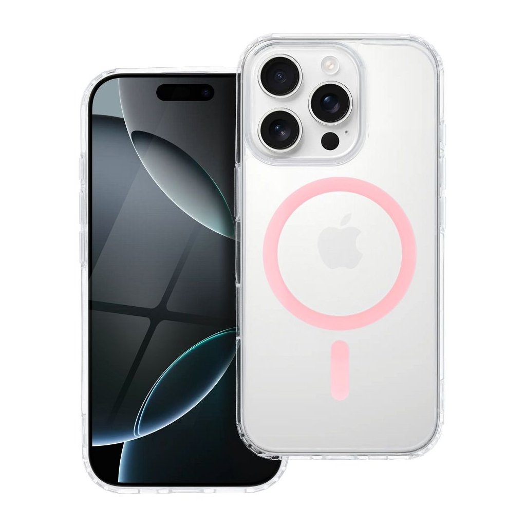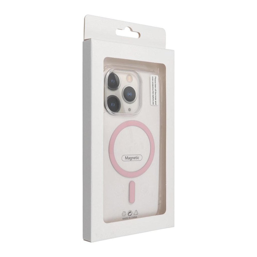 Priehľadný obal s for IPHONE 13 MINI ružový, ktorého odolná a priehľadná vrstva chráni Váš telefón pred nárazmi alebo poškriabaním. Produkt je kompatibilný s technológiou MagSafe, ktorá umožňuje indukčné nabíjanie.