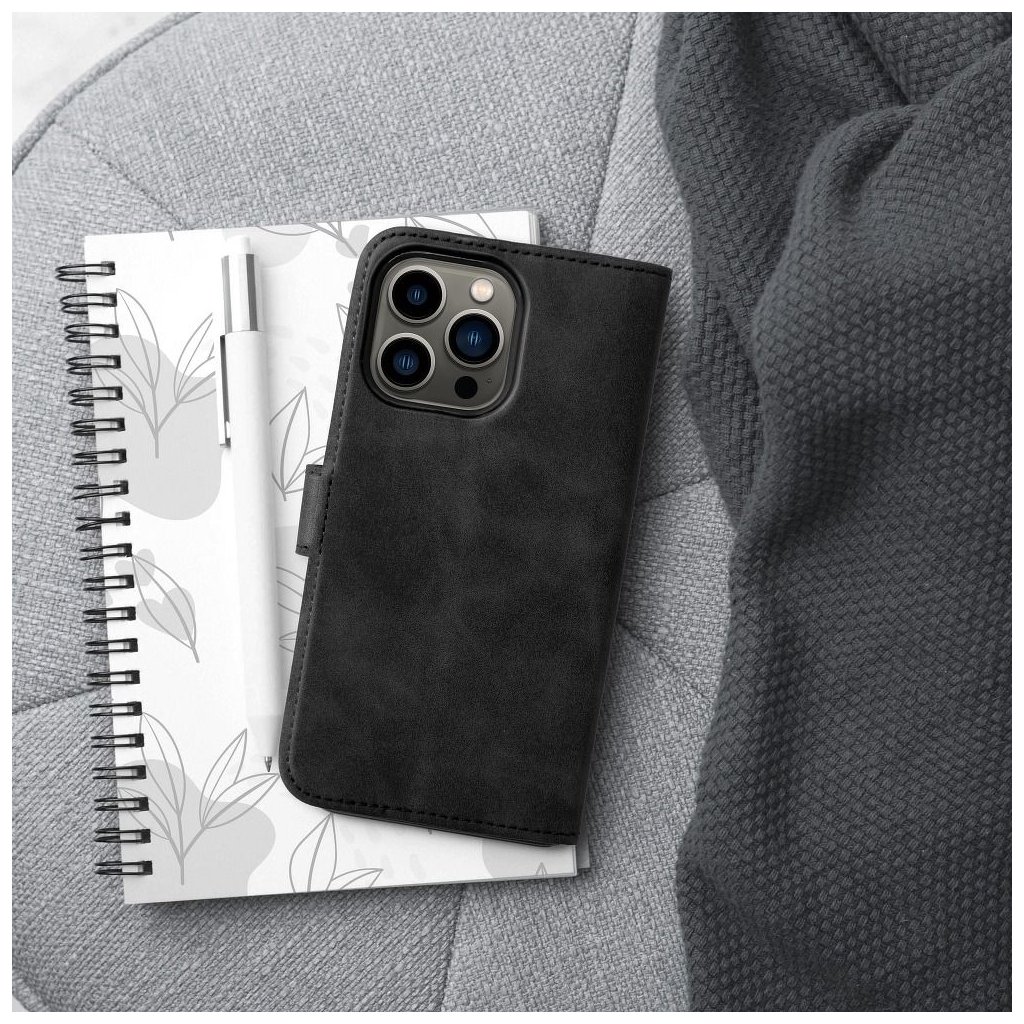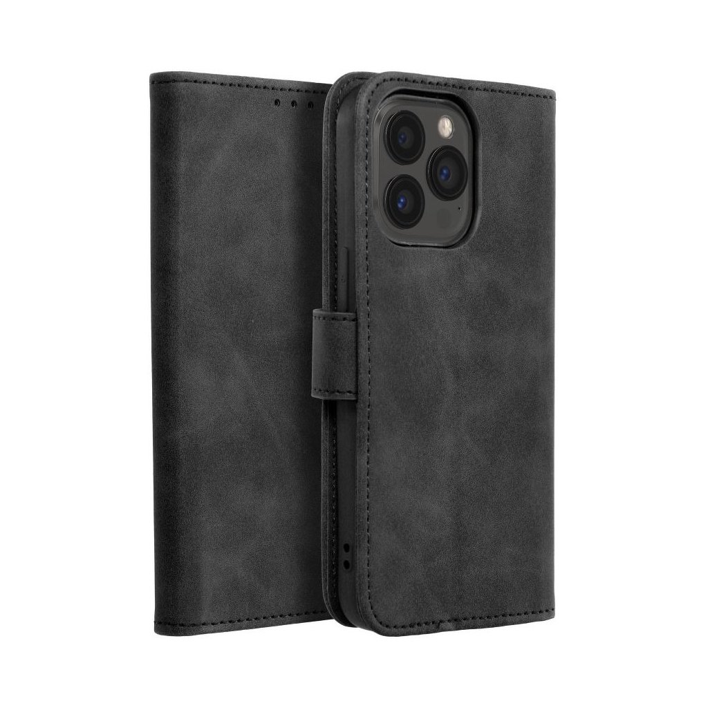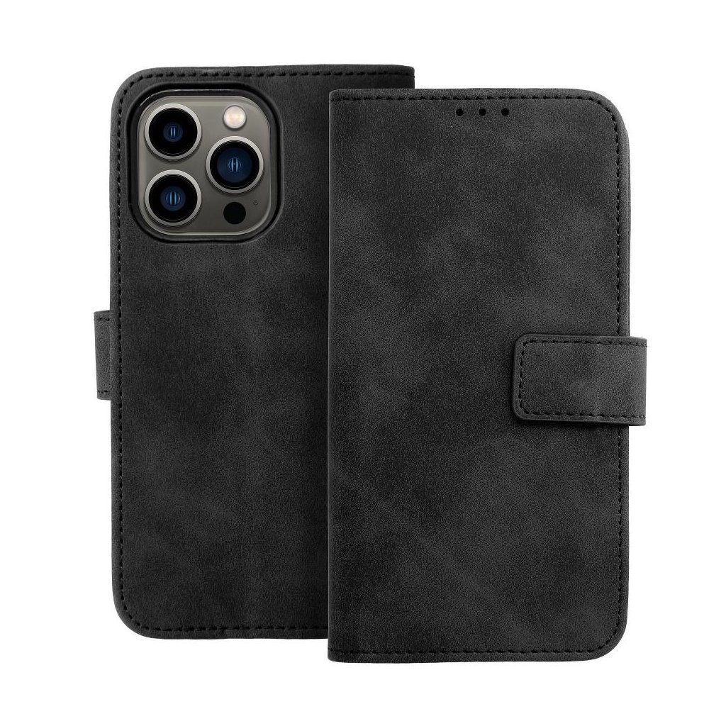 Zatvárací peňaženkový obal TENDER Book pre IPHONE 13 Pro čierny v príjemnej imitácii kože v decentných farbách je ako stvorené pre každého, kto má skutočne štýl. Materiál je na dotyk veľmi príjemný a mäkký, telefónu ale poskytuje plnú ochranu zo všetkých strán.