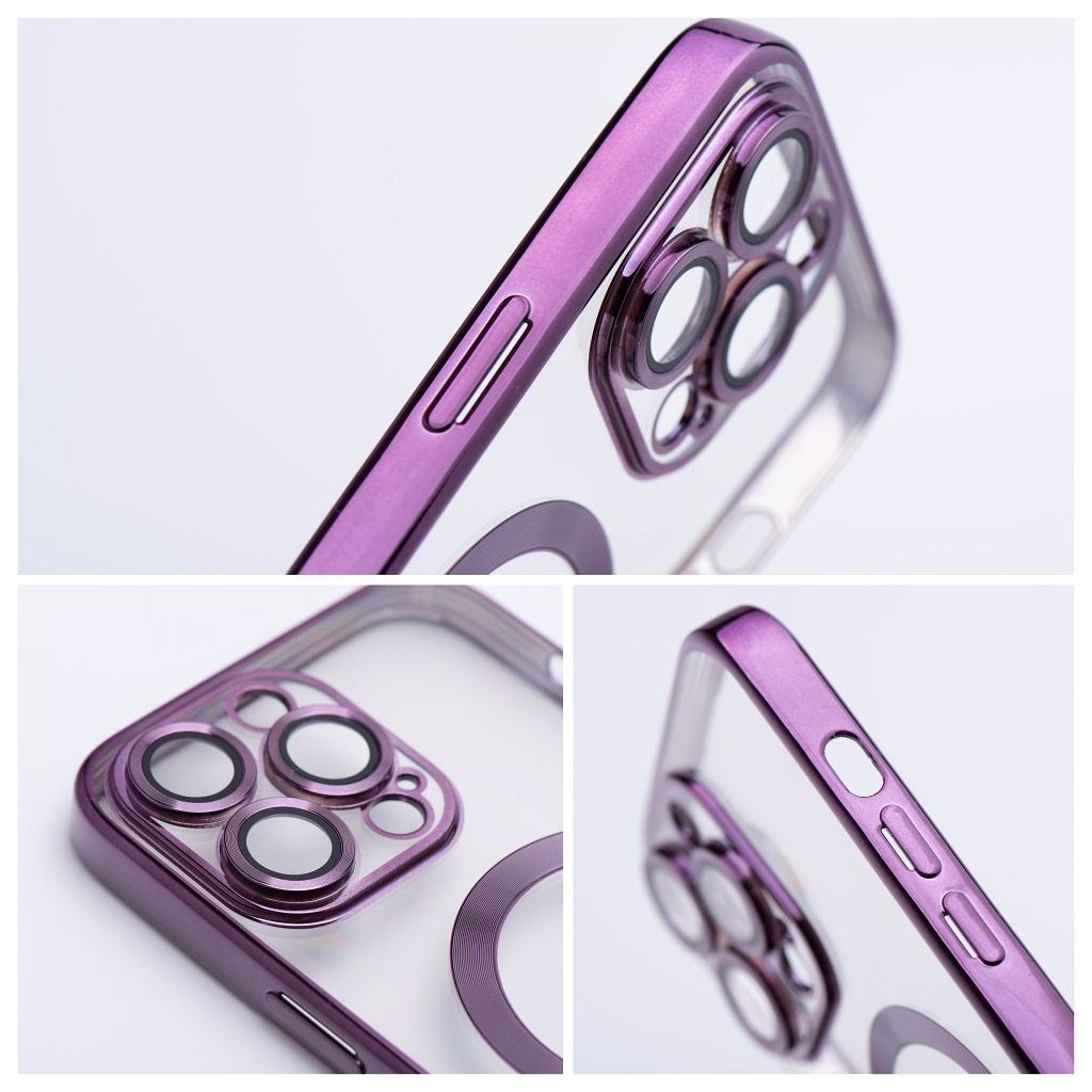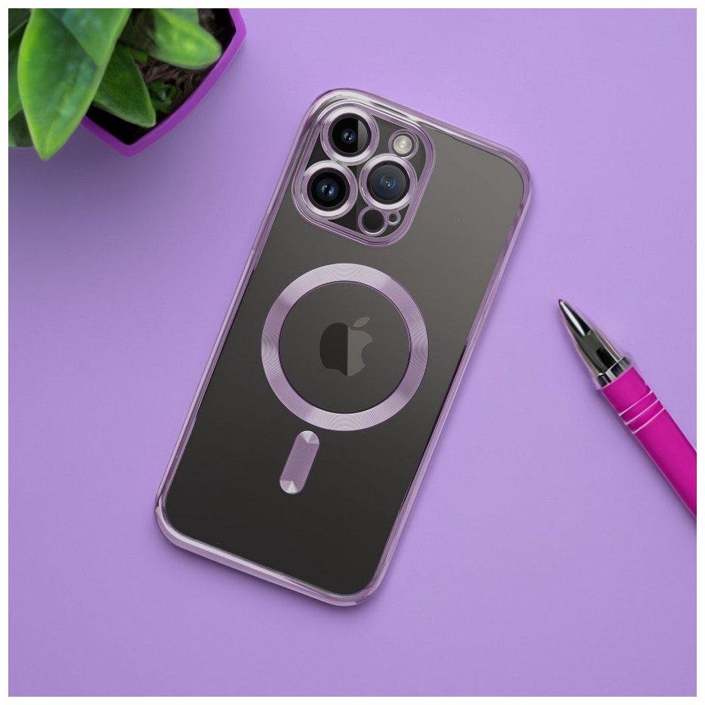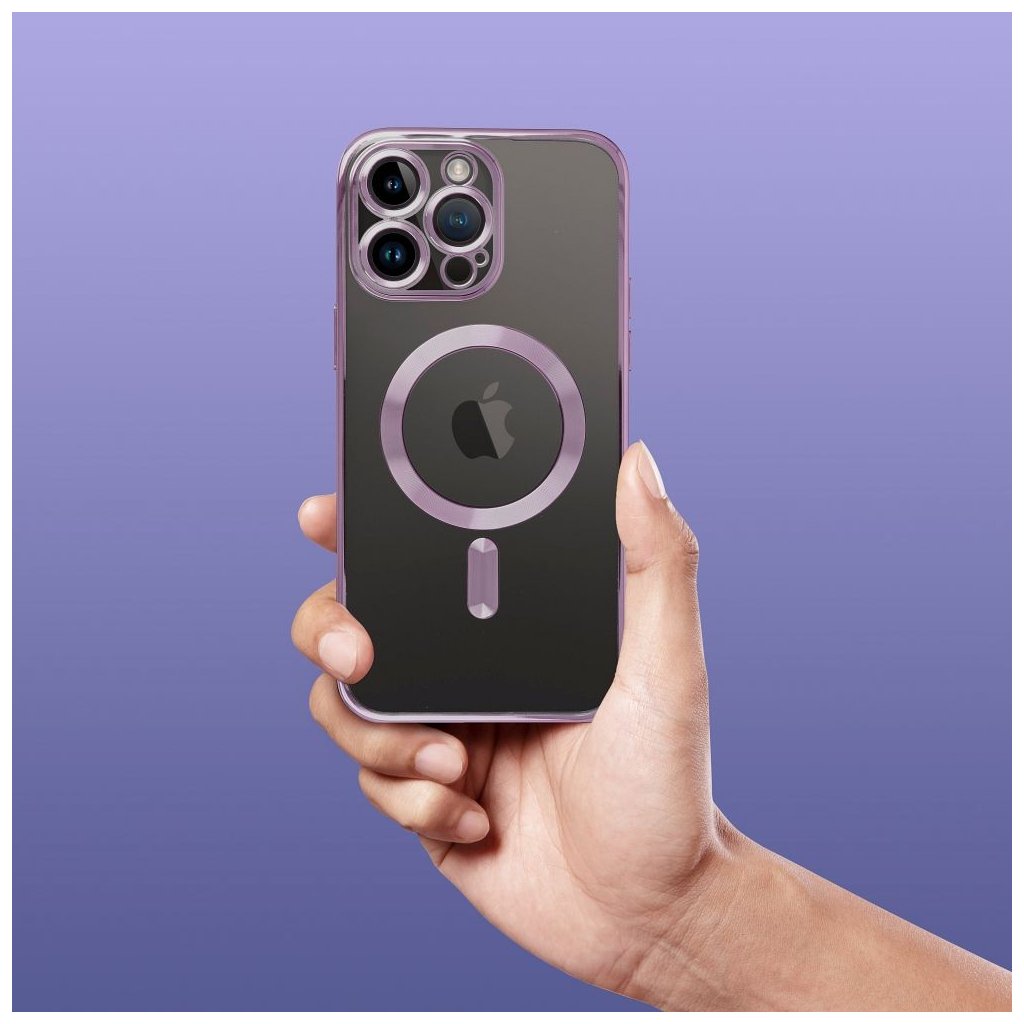 MagSafe priehľadné puzdro Case for iPhone 13 PRO Electro Mag Cover compatible with MagSafe purple je vhodné pre pužitie s rôznym príslušenstvom podporujúce magnetické uchytenie MagSafe®. Kvalitný kryt ochráni váš telefón pred poškodením a vďaka prekrytiu ostrovčeka fotoaparátu bude vaša optika v bezpečí.