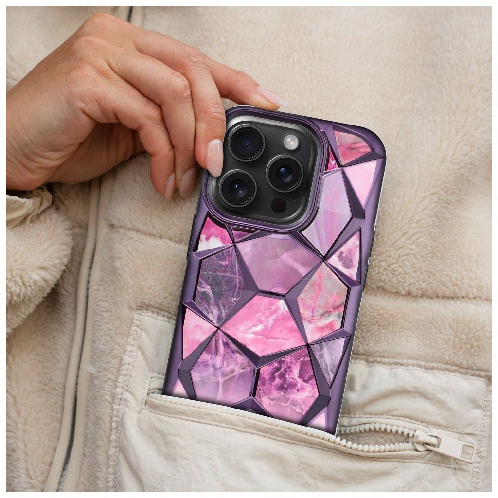 Elegantný obal na mobil TWINKI pre IPHONE 13 PRO fialový sa vyznačuje jedinečným vzorom, vyvýšeným okrajom okolo ostrovčeka fotoaparátu a praktickou kartónovou vložkou, ktorú možno voľne vybrať alebo ponechať na mieste. Tento výrobok je vyrobený z jedného odliatku, čo zaručuje jeho odolnosť.