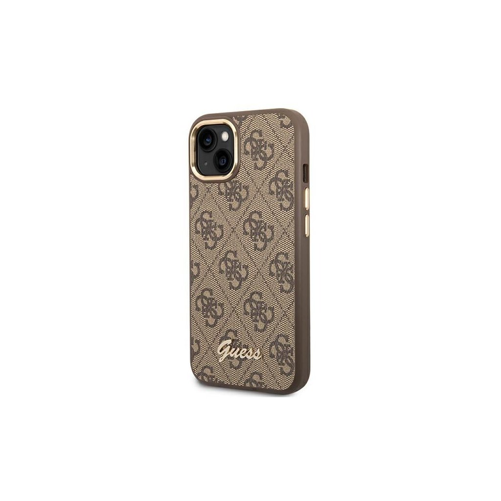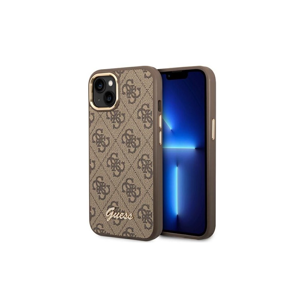 Štýlové a Originálne puzdro GUESS pre IPHONE 13 / 14 / 15 GUHCP14SHG4SHW (4G Vintage zlaté Logo) hnedé je kvalitný obal na Váš telefón vyrobený z odolných materiálov, s prepracovanými detailmi a dizajnom.