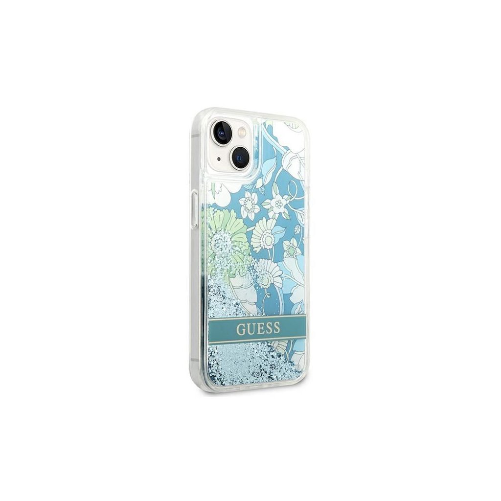 Originálne puzdro GUESS pre IPHONE 13 / 14 / 15 GUHCP14SLFLSN (Flower Liquid Glitter) zelené
