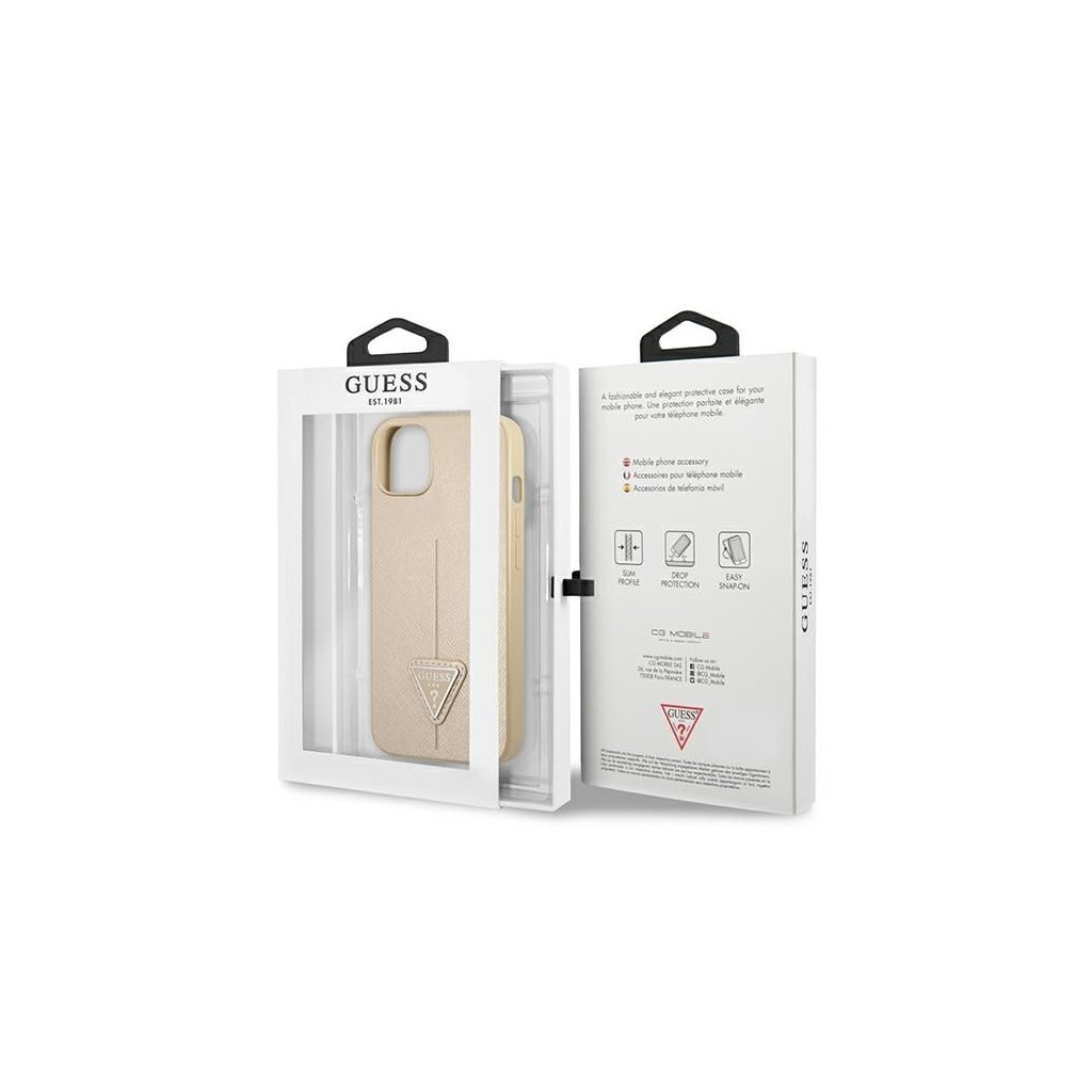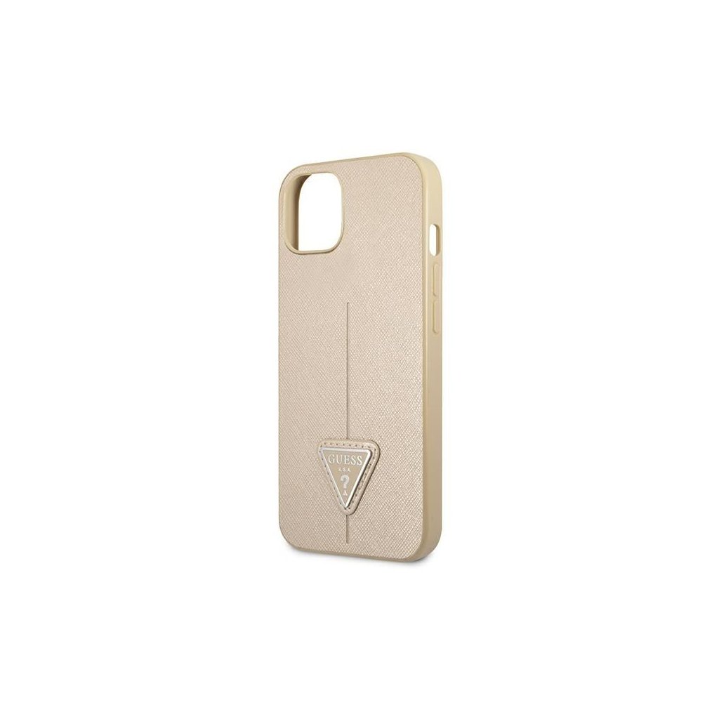 Štýlové a Originálne puzdro GUESS pre IPHONE 13 / 14 / 15 GUHCP14SPSATLE (SaffianoTriangle Logo) šedé je kvalitný obal na Váš telefón vyrobený z odolných materiálov, s prepracovanými detailmi a dizajnom.