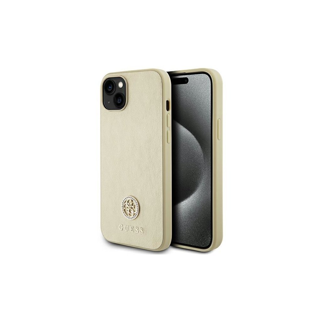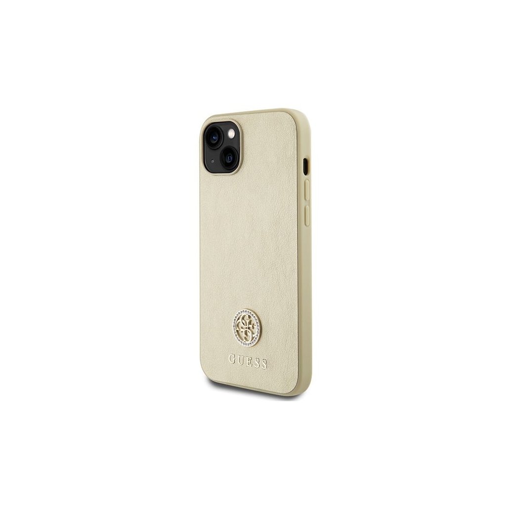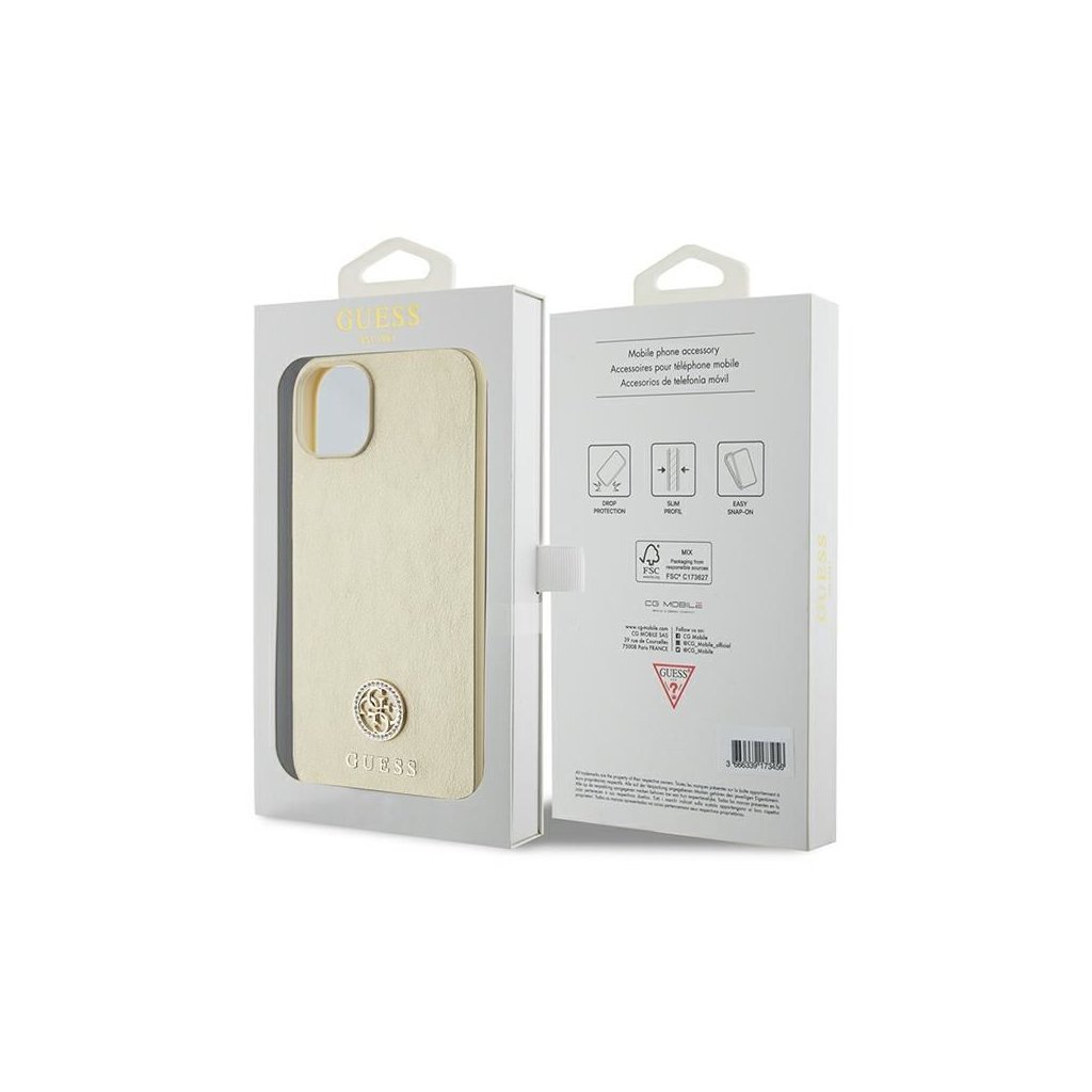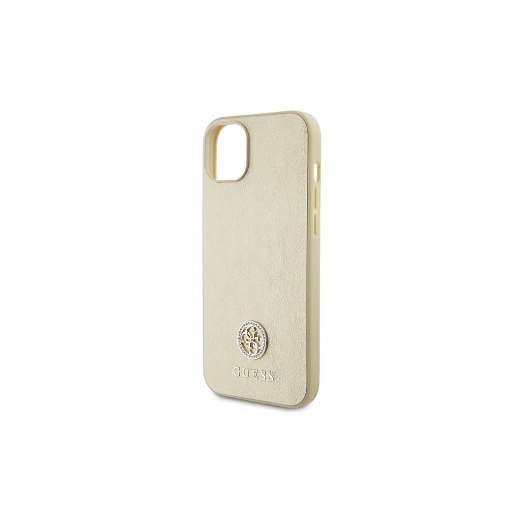 Štýlové a Originálne puzdro GUESS pre IPHONE 13 / 14 / 15 GUHCP15SPS4DGPD (Leather 4G Metal Logo Strass) zlaté je kvalitný obal na Váš telefón vyrobený z odolných materiálov, s prepracovanými detailmi a dizajnom.
