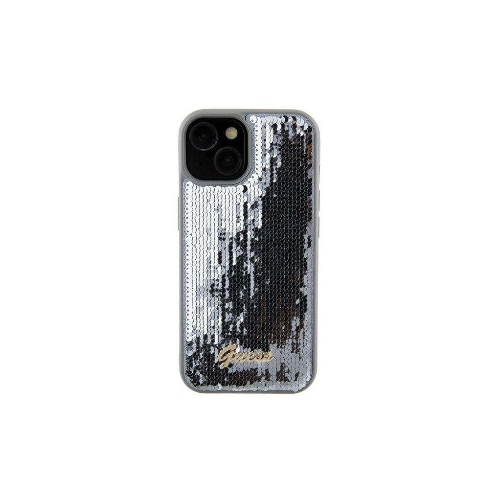 Originálne puzdro GUESS pre IPHONE 13 / 14 / 15 GUHCP15SPSFDGSS (Sequin Script Metal) strieborné