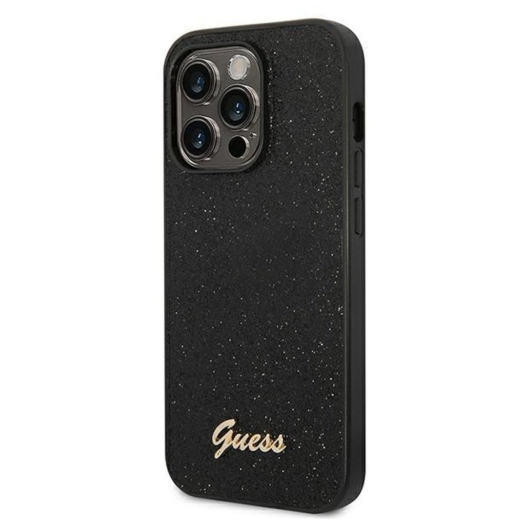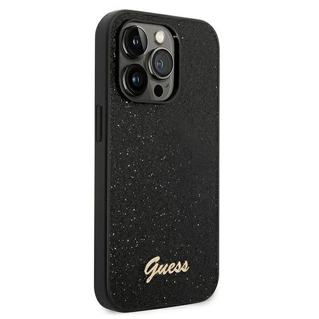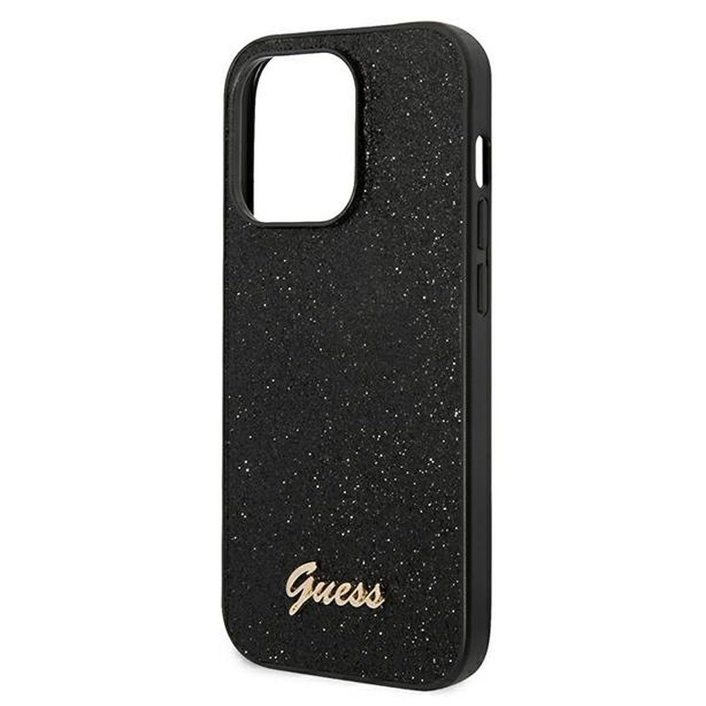 GUESS pre IPHONE 14 Pro GUHCP14LHGGSHK (Glitter Flakes Script Metal Logo) čierne
