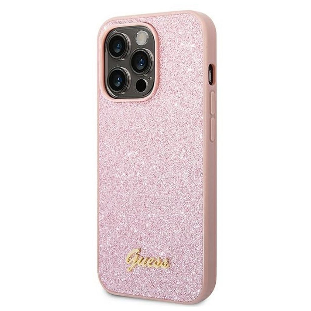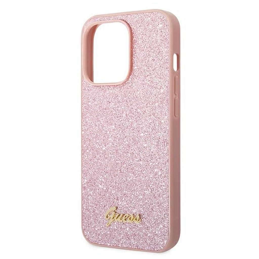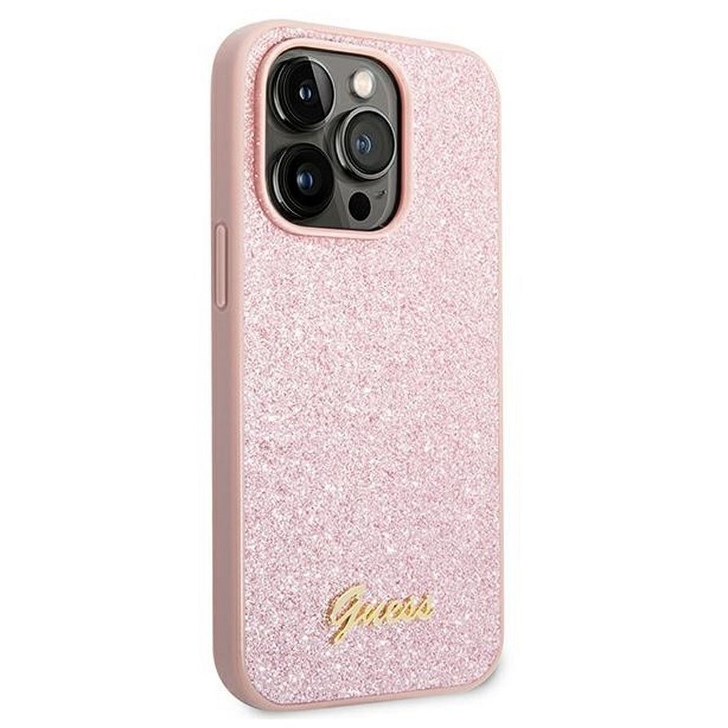 GUESS pre IPHONE 14 Pro GUHCP14LHGGSHP (Glitter Flakes Script Metal Logo) ružové