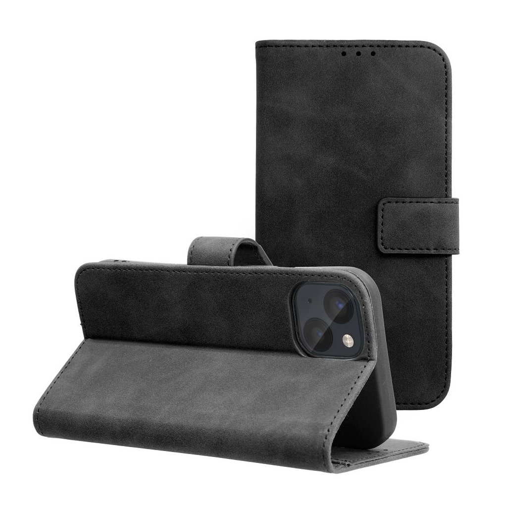 Zatvárací peňaženkový obal TENDER Book pre IPHONE 14 čierny v príjemnej imitácii kože v decentných farbách je ako stvorené pre každého, kto má skutočne štýl. Materiál je na dotyk veľmi príjemný a mäkký, telefónu ale poskytuje plnú ochranu zo všetkých strán.