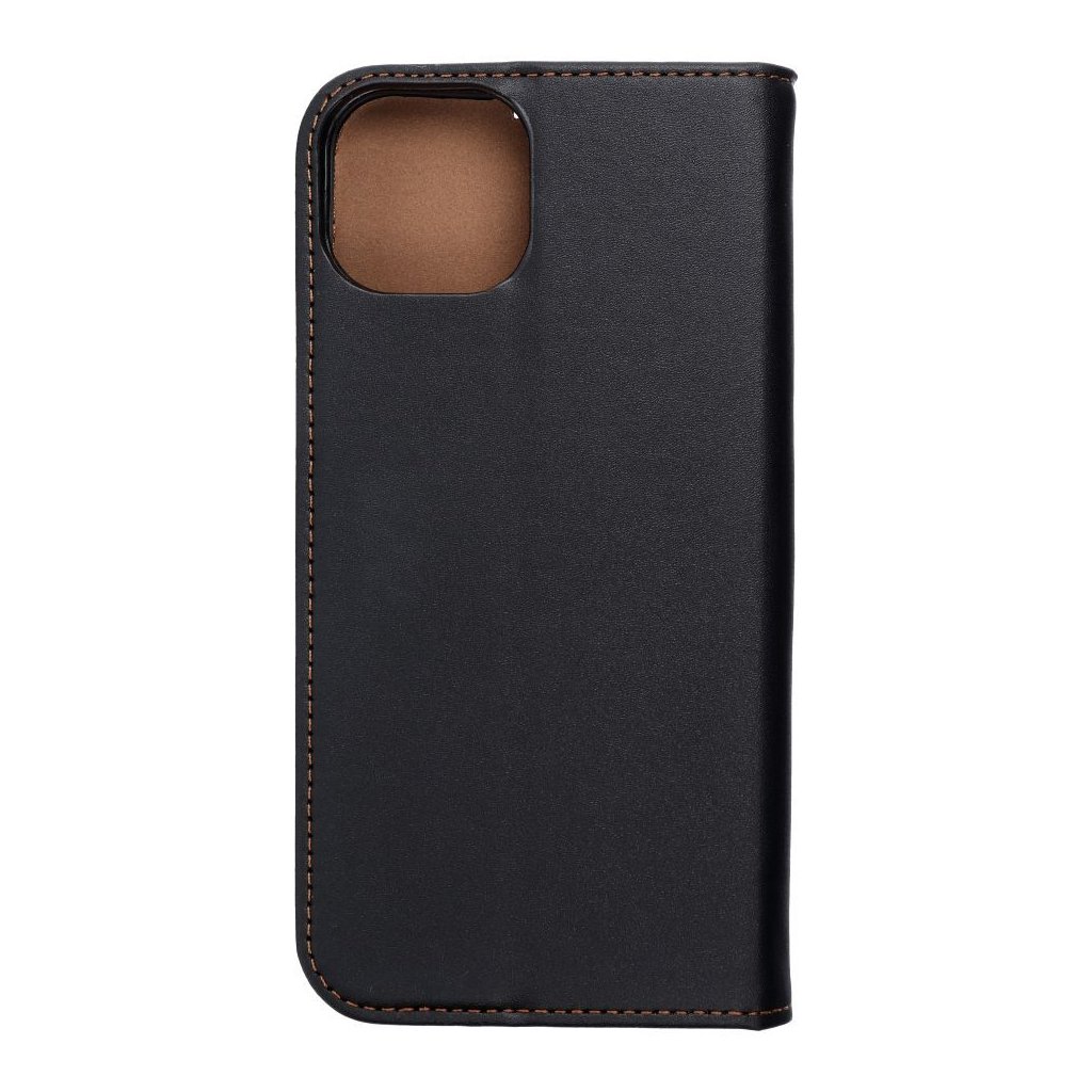 Elegantné kožené puzdro SMART PRO Book pre IPHONE 15 Plus čierne z vysoko kvalitných materiálov (prírodnej kože a TPU) a veľmi starostlivým spracovaním je určené pre náročných užívateľov, ktorí majú radi svoj štýl. Konštrukcia je vystužená, ale k dodatočnej ochrane i estetickej funkcii prispievajú aj švy po okrajoch, vyvedené vo farbe vnútornej časti puzdra.