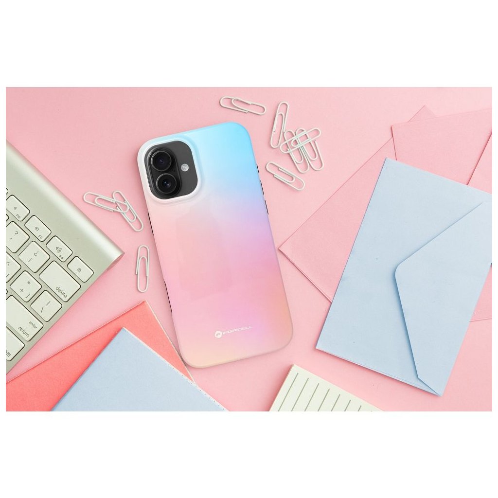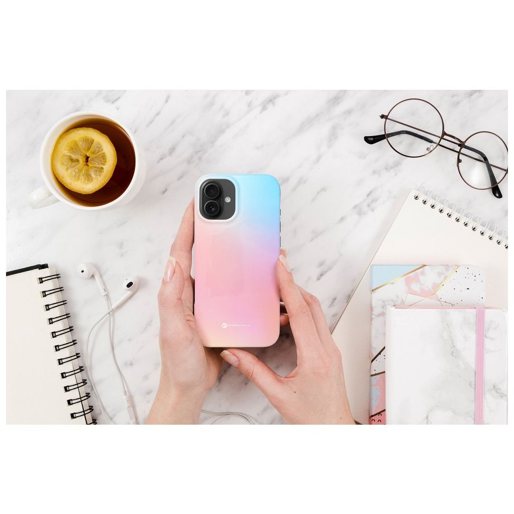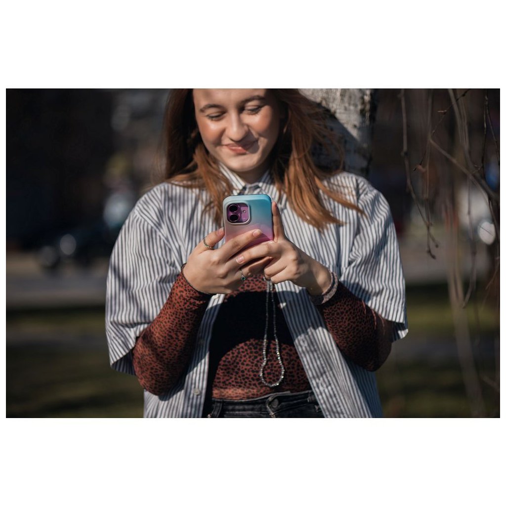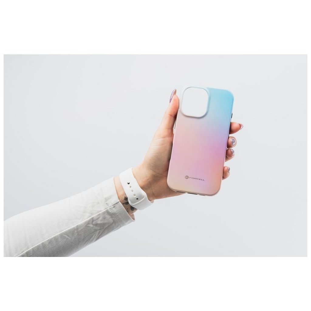 Kvalitný pestrofarebný kryt Case for iPhone 15 PRO MAX F-Protect Mirage compatible with Magsafe Military Drop-Test ružovo modrý sa vyznačuje atraktívnym dizajnom a robustným spracovaním. Jeho výrazná potlač bola vytvorená pomocou technológie 4D a je pokrytá dodatočnou priehľadnou vrstvou, ktorá mu dodáva odolnosť a chráni ho pred odieraním. Puzdro je vyrobené z pružného silikónu a zvýšené okraje na hranách a okolo rámu fotoaparátu chránia smartfón.