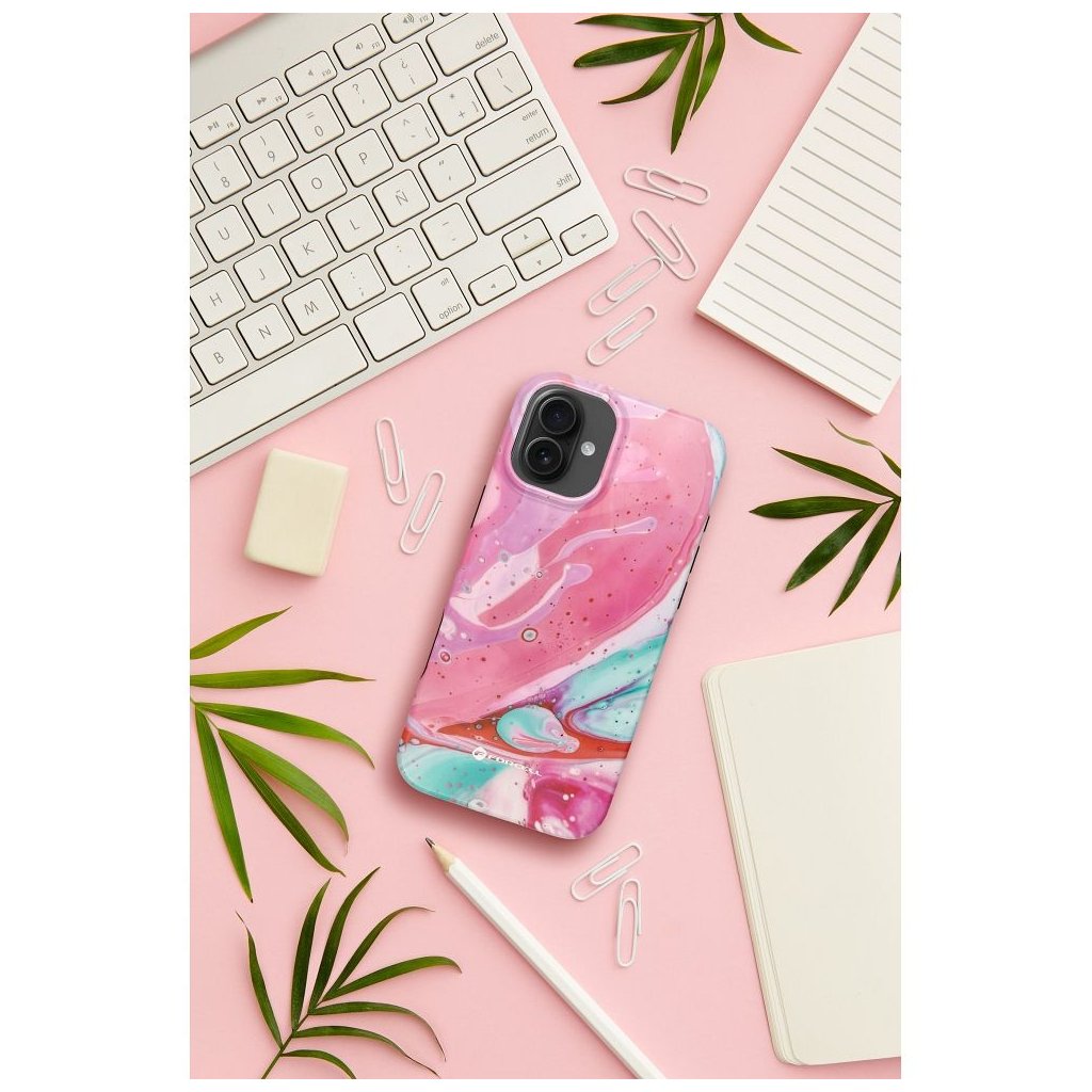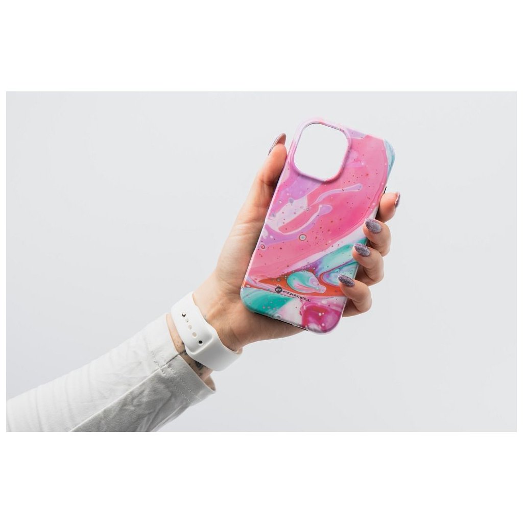 Kvalitný pestrofarebný kryt Case for iPhone 15 PRO MAX F-Protect Mirage compatible with Magsafe Military Drop-Test ružový mramor sa vyznačuje atraktívnym dizajnom a robustným spracovaním. Jeho výrazná potlač bola vytvorená pomocou technológie 4D a je pokrytá dodatočnou priehľadnou vrstvou, ktorá mu dodáva odolnosť a chráni ho pred odieraním. Puzdro je vyrobené z pružného silikónu a zvýšené okraje na hranách a okolo rámu fotoaparátu chránia smartfón.