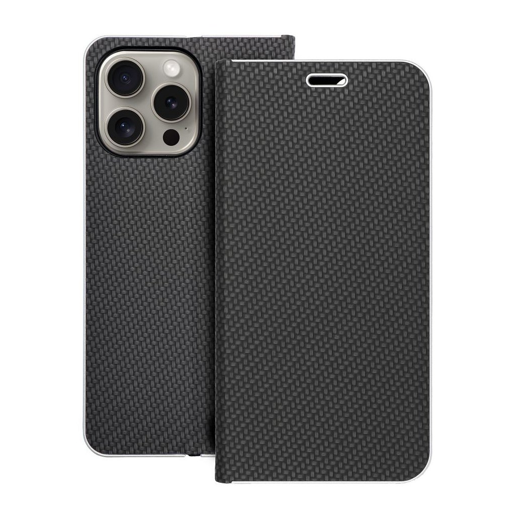 Puzdro LUNA Book Carbon pre IPHONE 15 Pro Max čierne